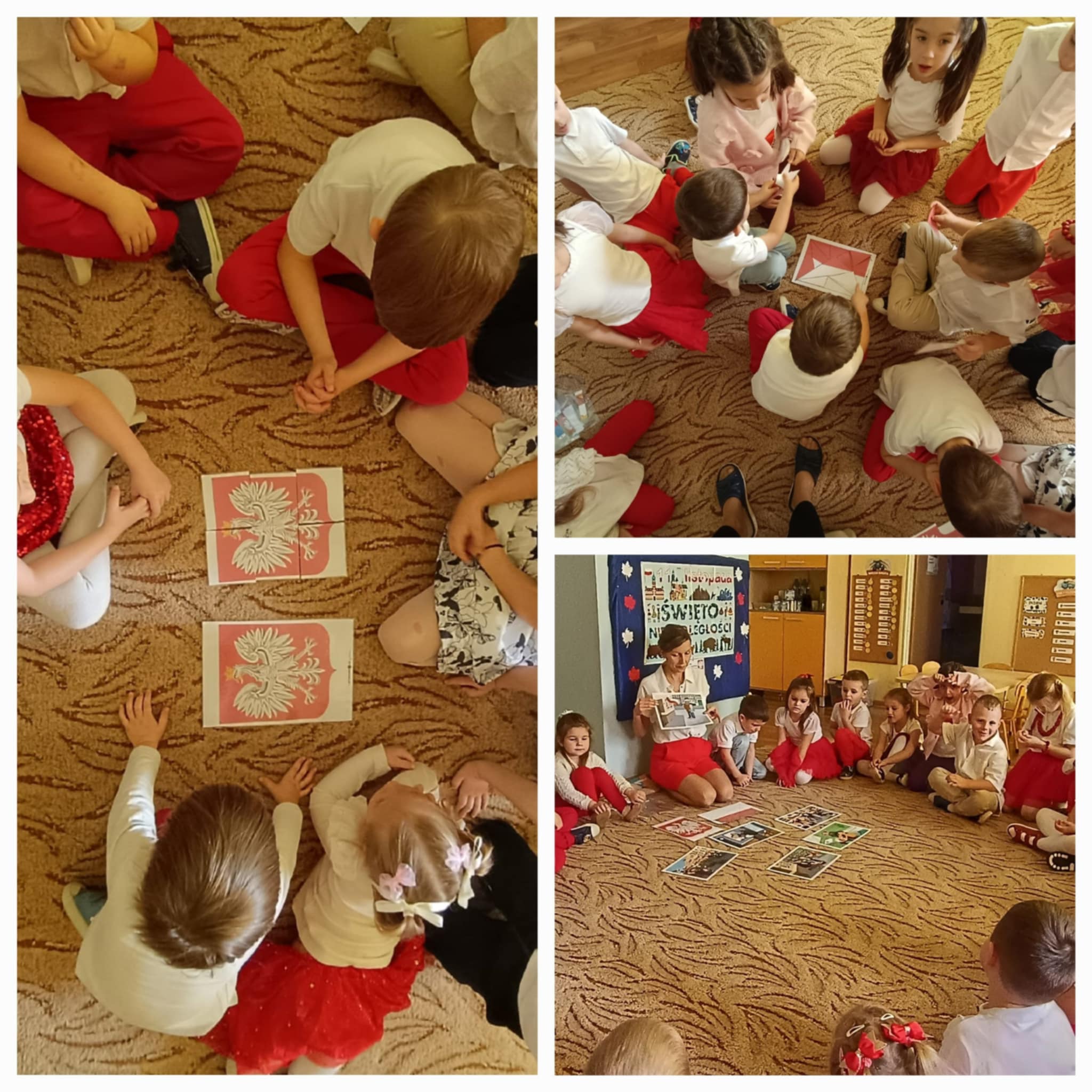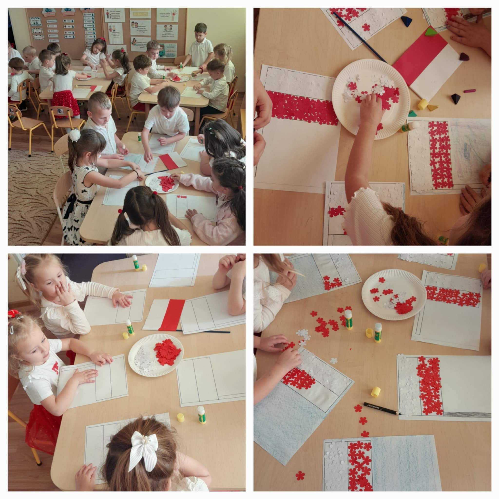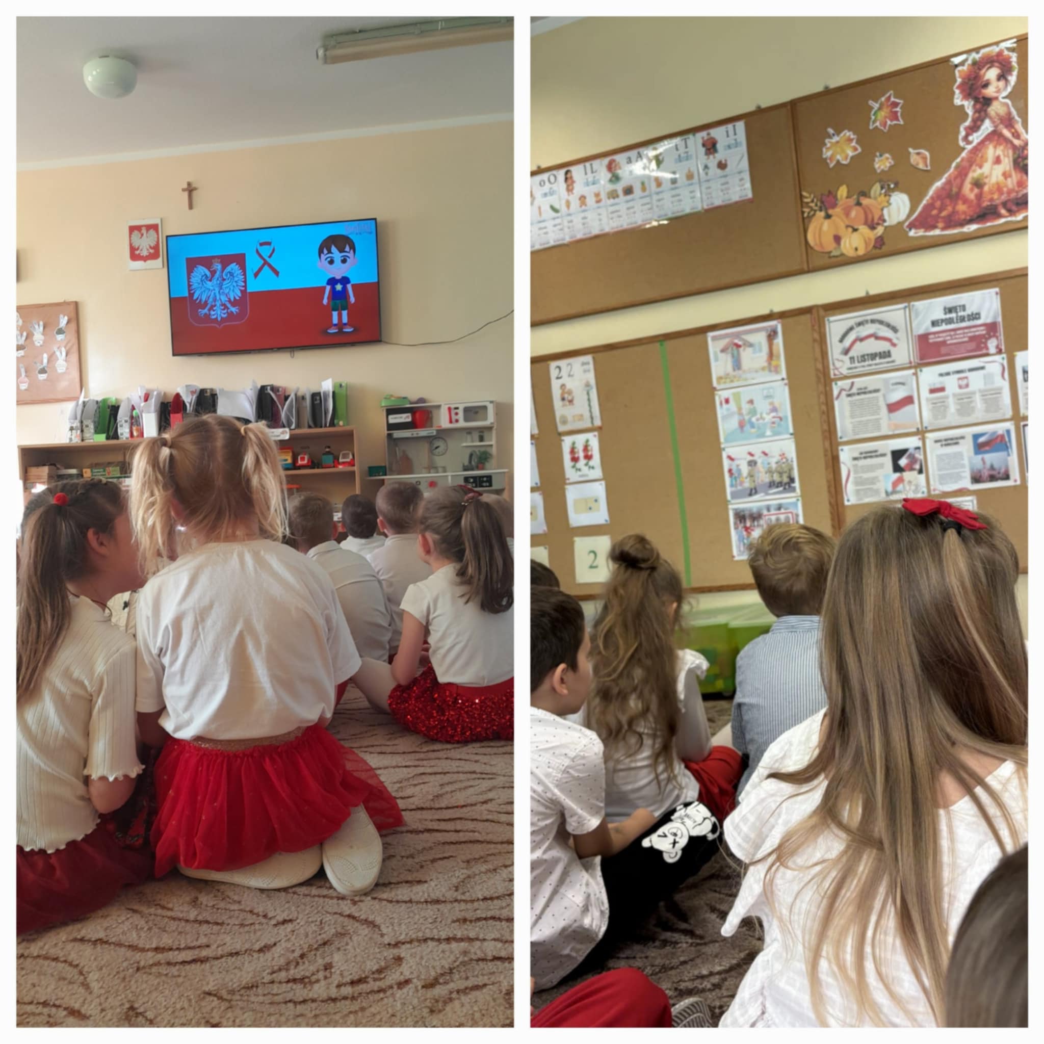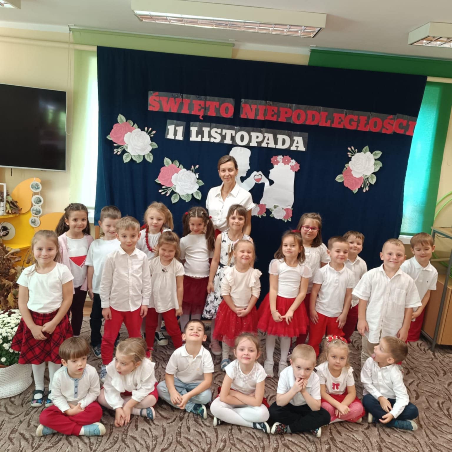 Dnia 7 listopada 2025r. w naszym przedszkolu obchodziliśmy Narodowe Święto Niepodległości. Z tej okazji dzieci przyszły ubrane w barwy biało-czerwone, za co serdecznie dziękujemy Rodzicom za zaangażowanie i przygotowanie pięknych, patriotycznych strojów. Podczas uroczystości wszyscy wspólnie z dumą odśpiewaliśmy hymn narodowy – „Mazurek Dąbrowskiego”. Dzieci wykonały także własnoręcznie flagi Polski, które ozdobiły nasze przedszkole. Aby uczcić pamięć o bohaterach walczących o wolność naszej Ojczyzny, dzieci wraz z nauczycielami udały się pod tablicę upamiętniającą generała Leopolda Okulickiego, gdzie złożyły kwiaty.