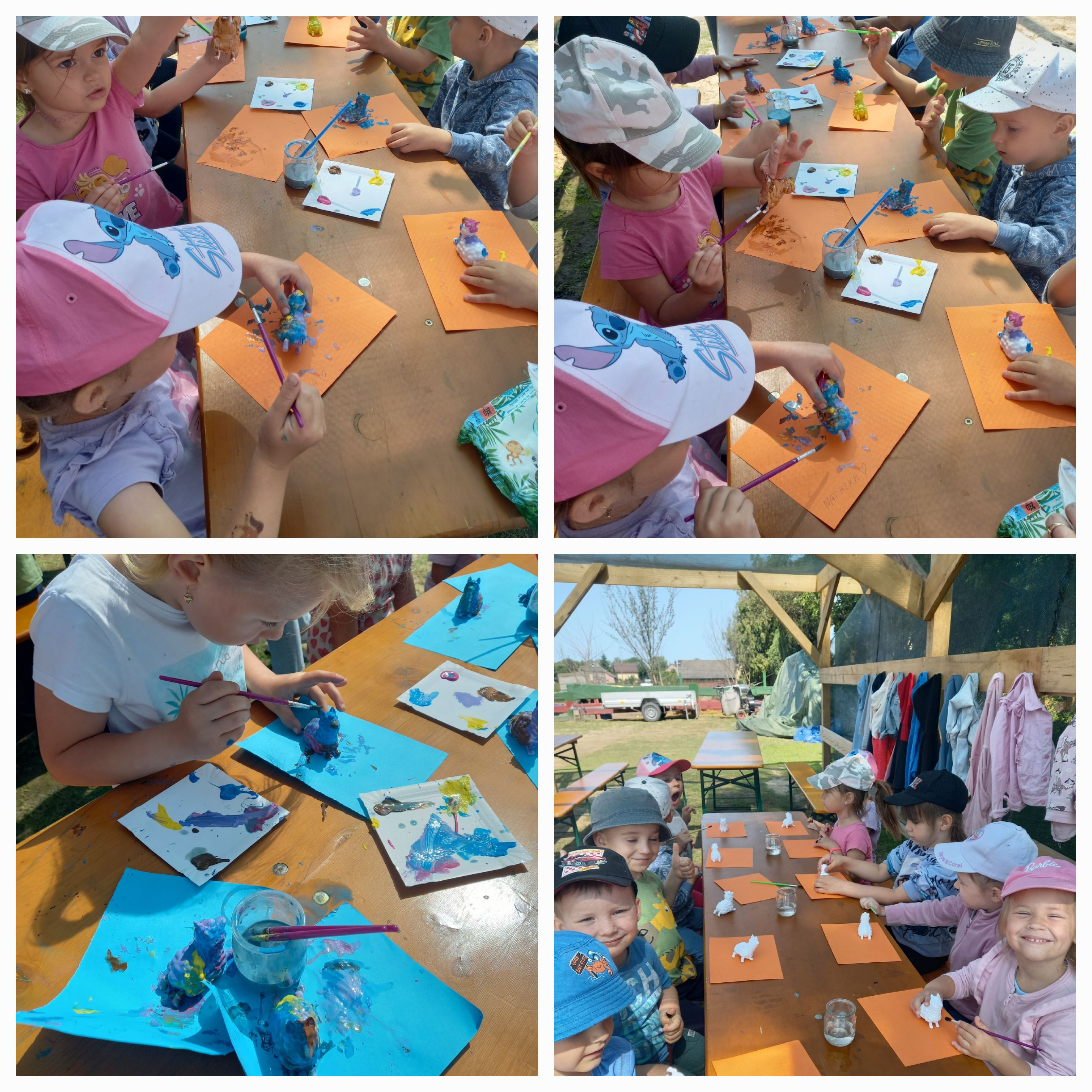 Dzieci miały okazję przeżyć niezwykłą przygodę – karmiły wielbłąda, alpaki, świnki morskie, głaskały zwierzęta, bawiły się na placu zabaw i dmuchańcach, a także zajadały się pysznymi kiełbaskami. Wzięły również udział w warsztatach plastycznych, podczas których malowały farbami podobizny alpak.