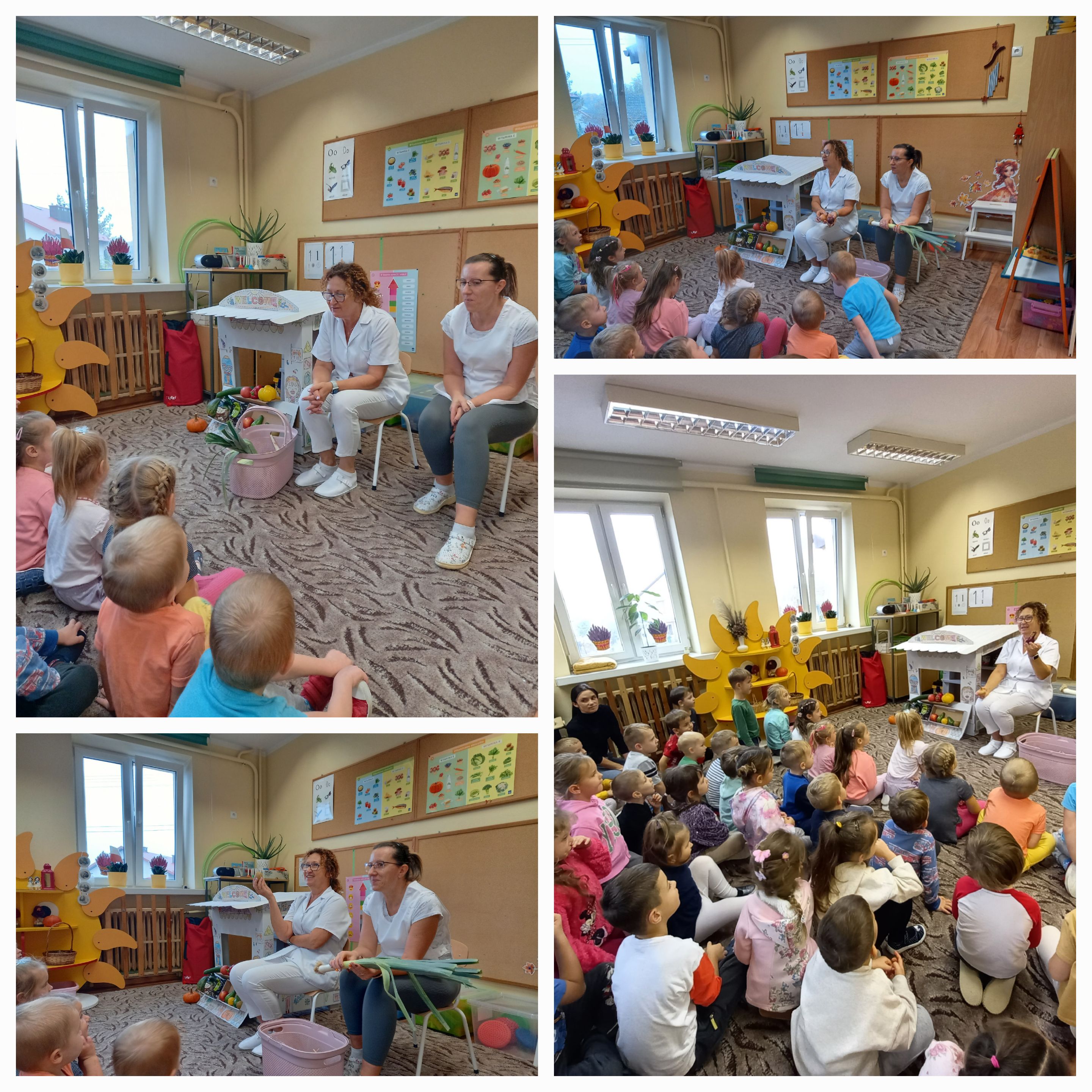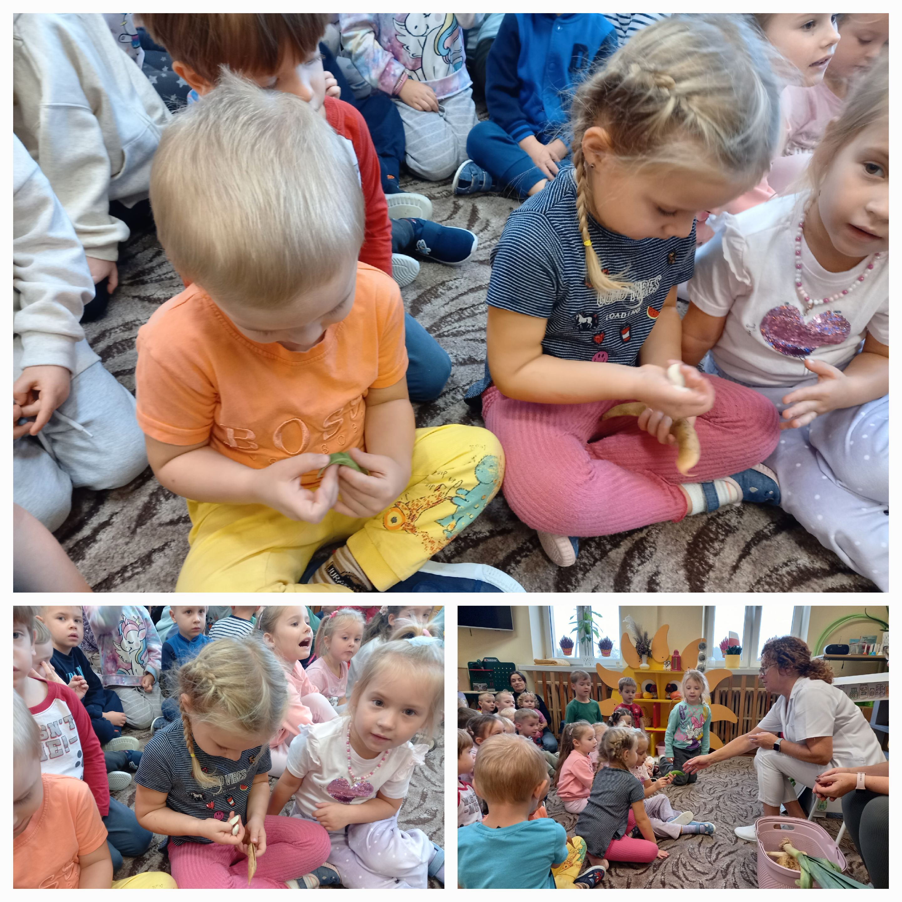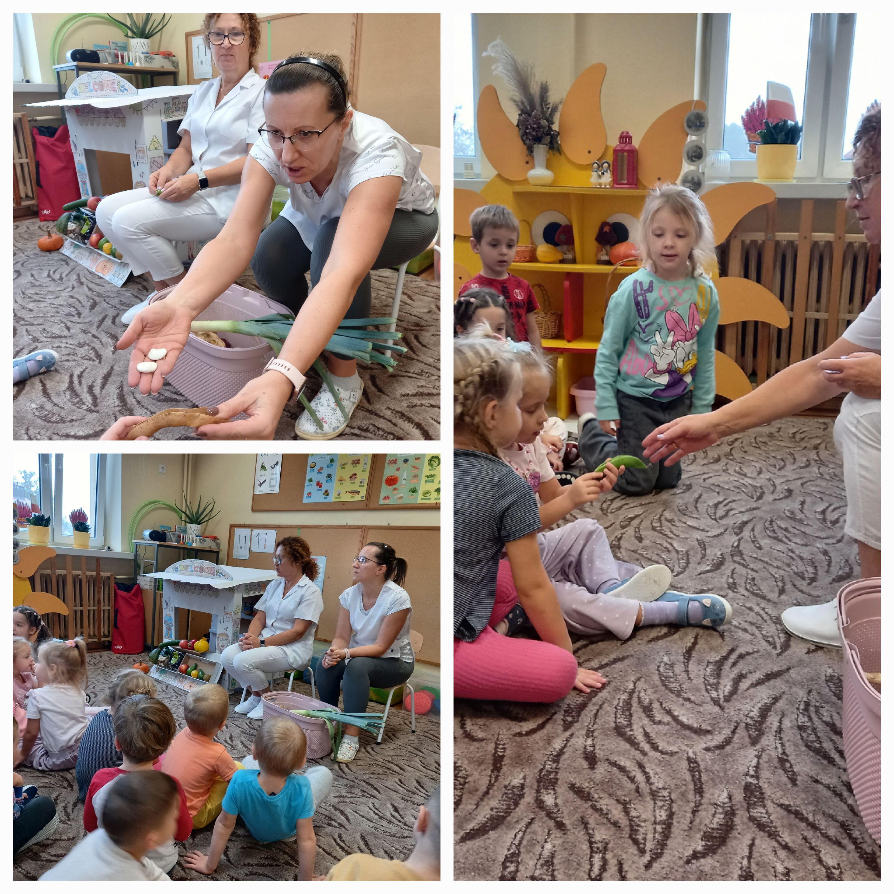 Dnia 15 października 2025r. nasze przedszkolaki miały okazję uczestniczyć w wyjątkowym spotkaniu z Paniami z przedszkolnej kuchni. Tematem przewodnim była zdrowa żywność i rola warzyw w codziennej diecie. Dzieci z zainteresowaniem słuchały opowieści o tym, dlaczego warto jeść warzywa i jak wpływają one na nasze zdrowie. Panie kucharki przyniosły ze sobą kosz pełen kolorowych warzyw, które dzieci mogły nie tylko zobaczyć, ale też dotknąć, powąchać i spróbować rozpoznać. Przedszkolaki chętnie dzieliły się pomysłami na potrawy, które można przygotować z marchewki, ogórka, buraka, selera, kapusty czy brokułów. To spotkanie było nie tylko ciekawą lekcją, ale i świetną zabawą!