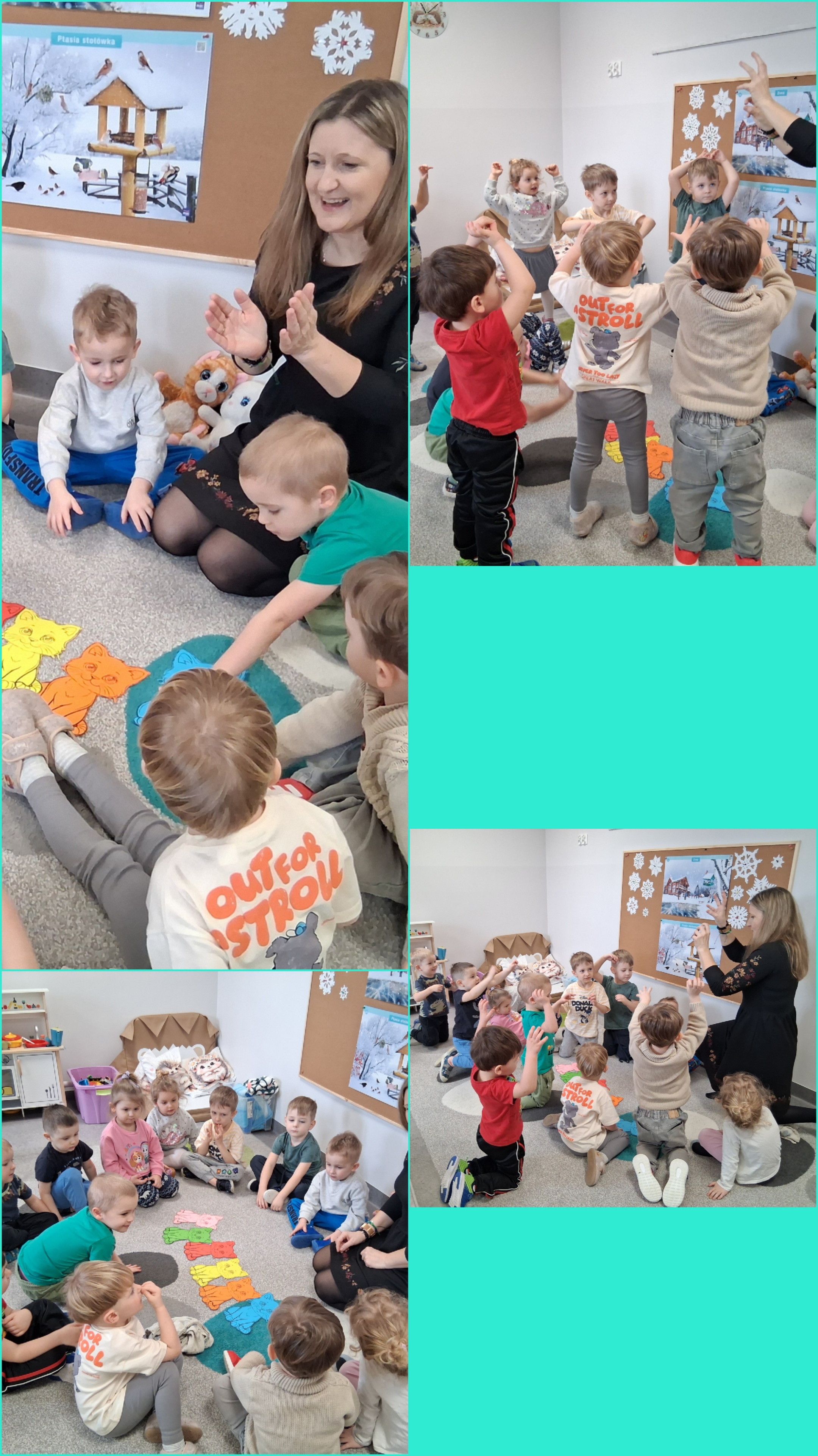 Nie zabrakło także wesołej zabawy! Przedszkolaki bawiły się i tańczyły przy piosence „Kotek”, brały udział w zabawach ruchowych naśladujących kocie zwyczaje, a także uczestniczyły w różnych aktywnościach tematycznych.