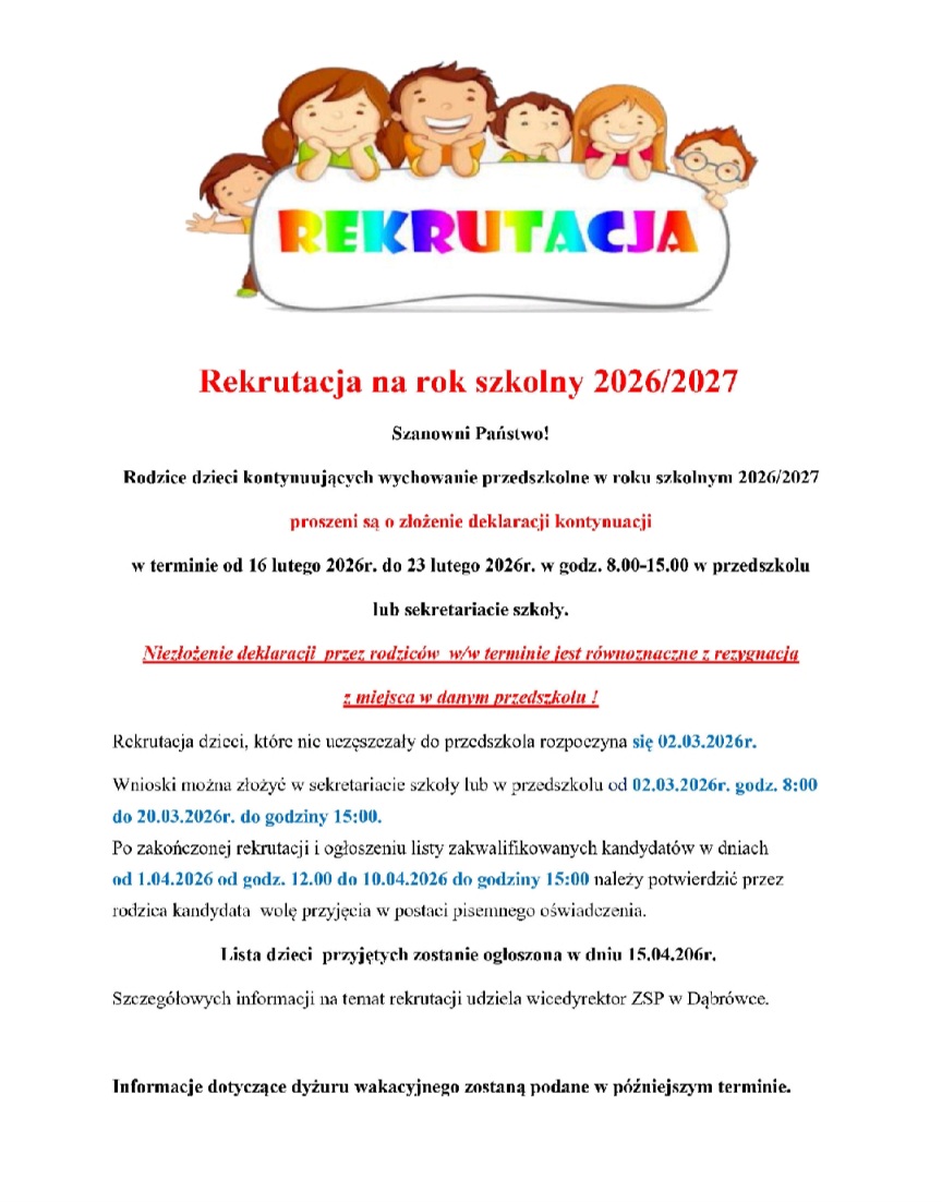 REKRUTACJA NA ROK SZKOLNY 2026/2027