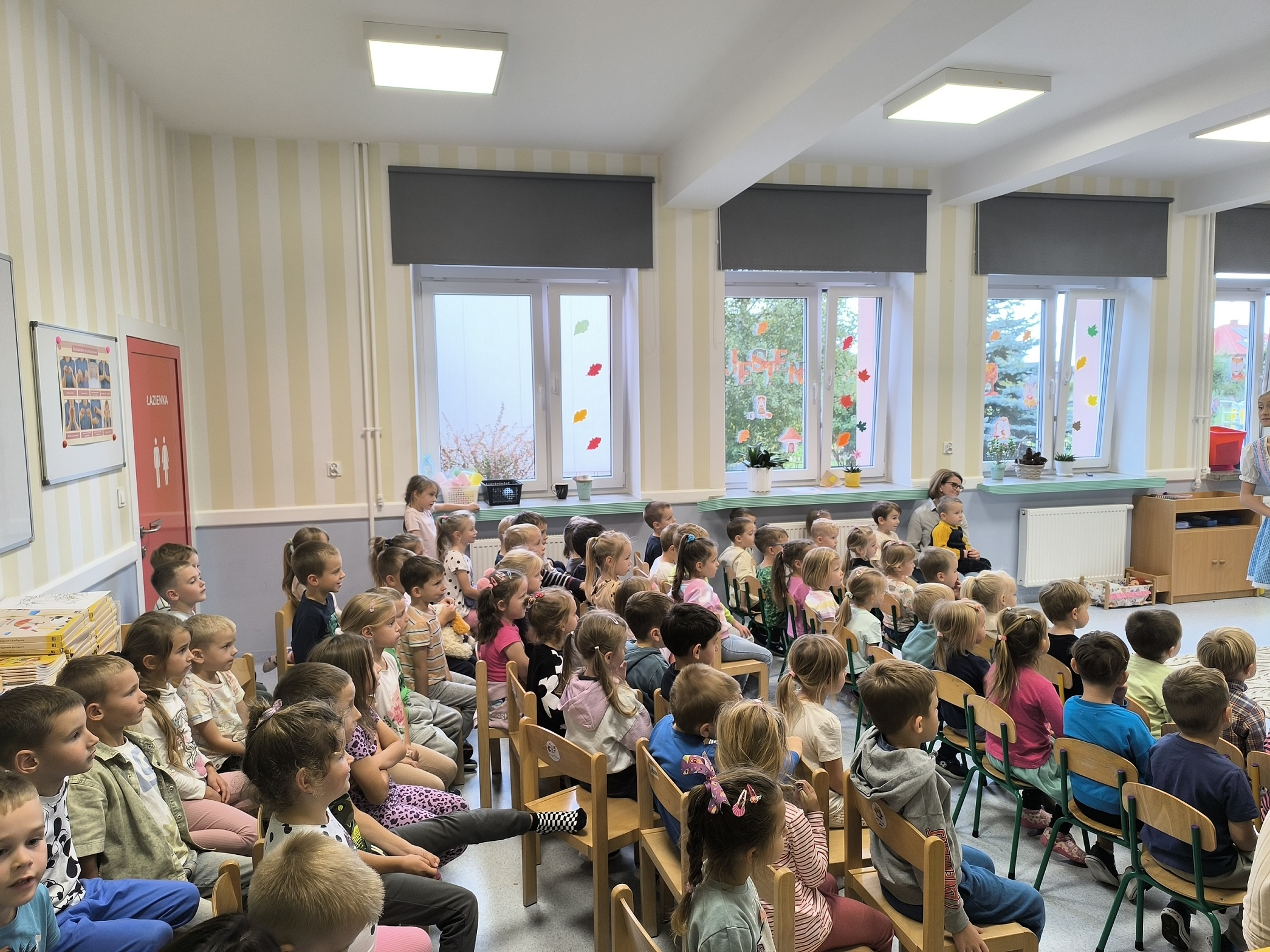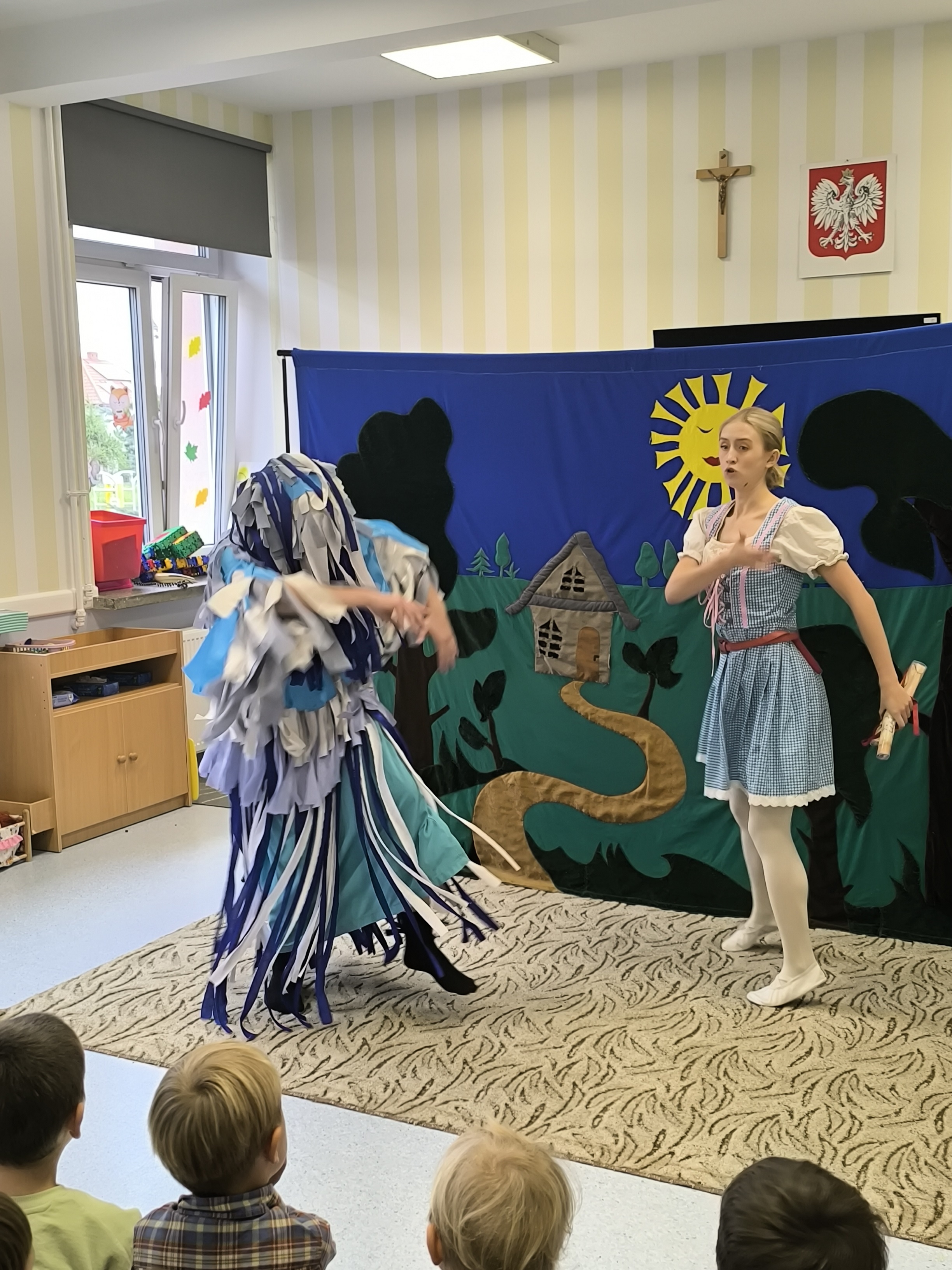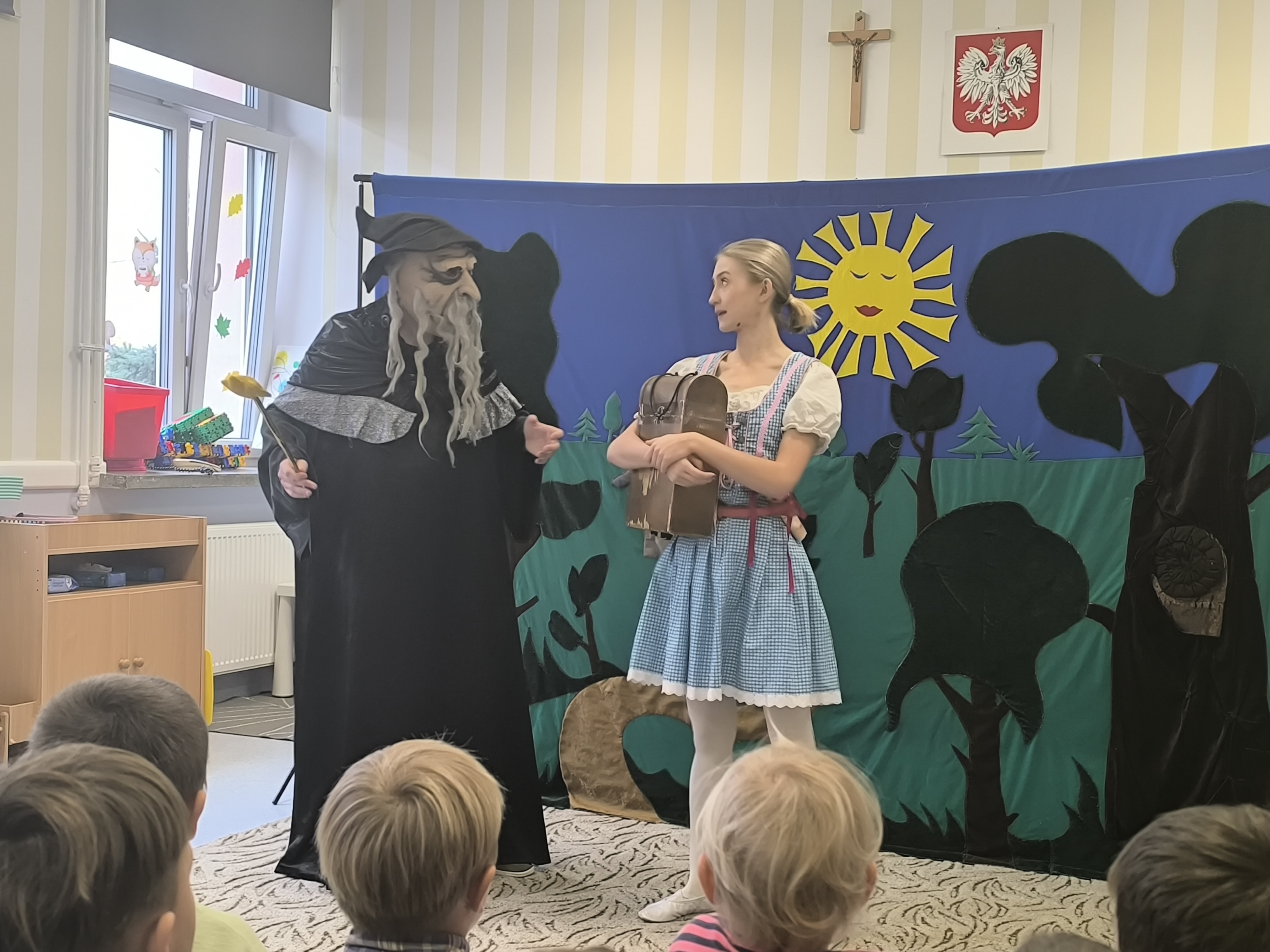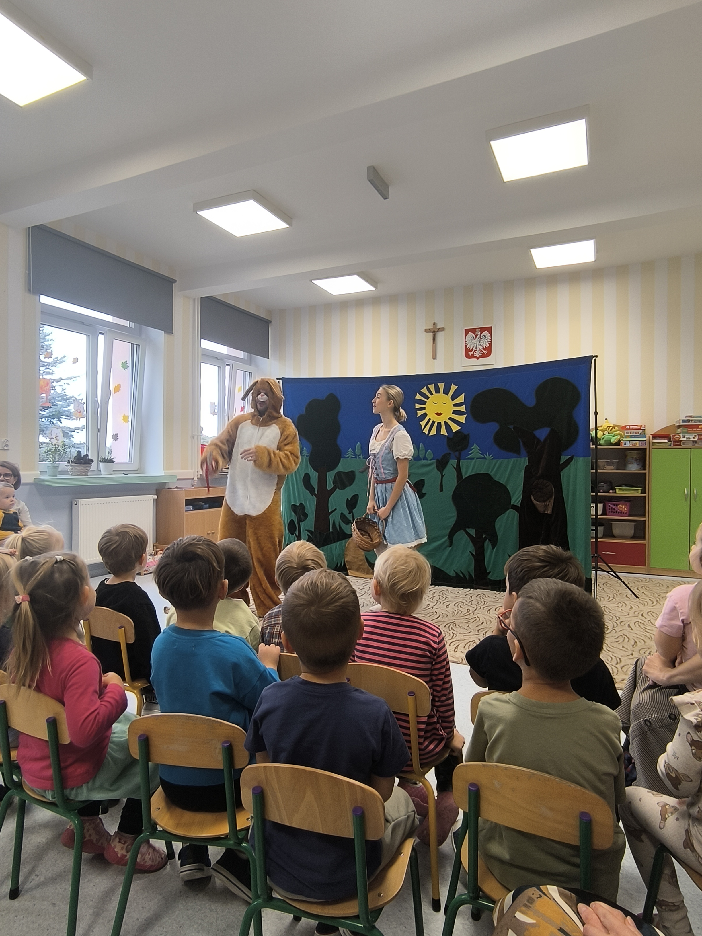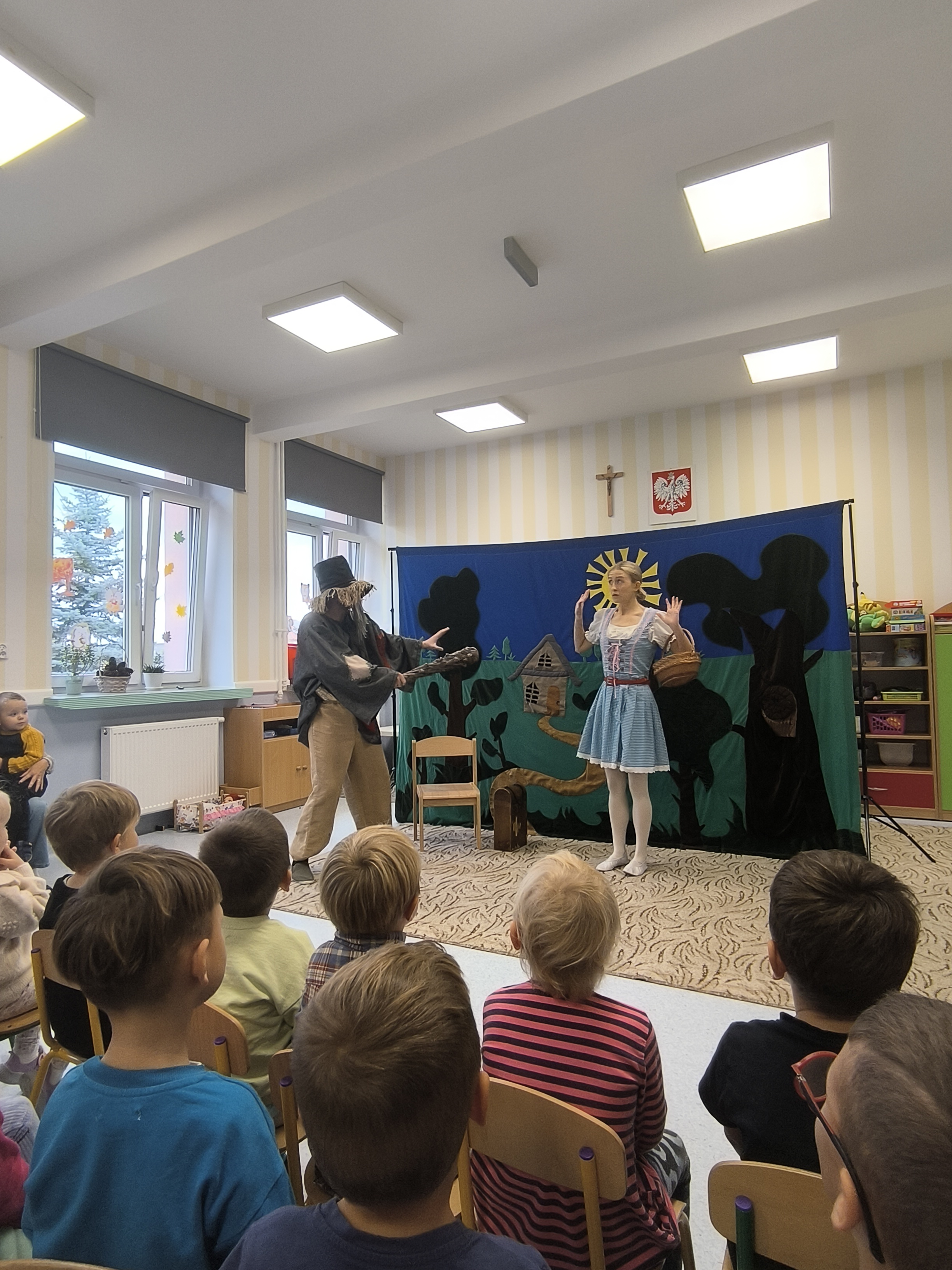 W dniu 06.10.2025 nasze przedszkole odwiedził Teatr Skrzat z Krakowa z przedstawieniem pt. „Strach ma wielkie oczy”. Dzieci aktywnie uczestniczyły w spektaklu podczas którego śpiewały i odpowiadały na pytania. Dzięki ciekawej grze aktorskiej nasze przedszkolaki poznały znaczenie zwrotu „strach ma wielkie oczy”. Teraz dzieci już dobrze wiedzą, że często obiekt naszego lęku i strachu w rzeczywistości wcale nie jest taki groźny, na jaki wygląda. Przedszkolaki bawiły się wspaniale, było dużo uśmiechu, radości oraz fantastycznej zabawy pełnej niesamowitych przygód. M. Marks