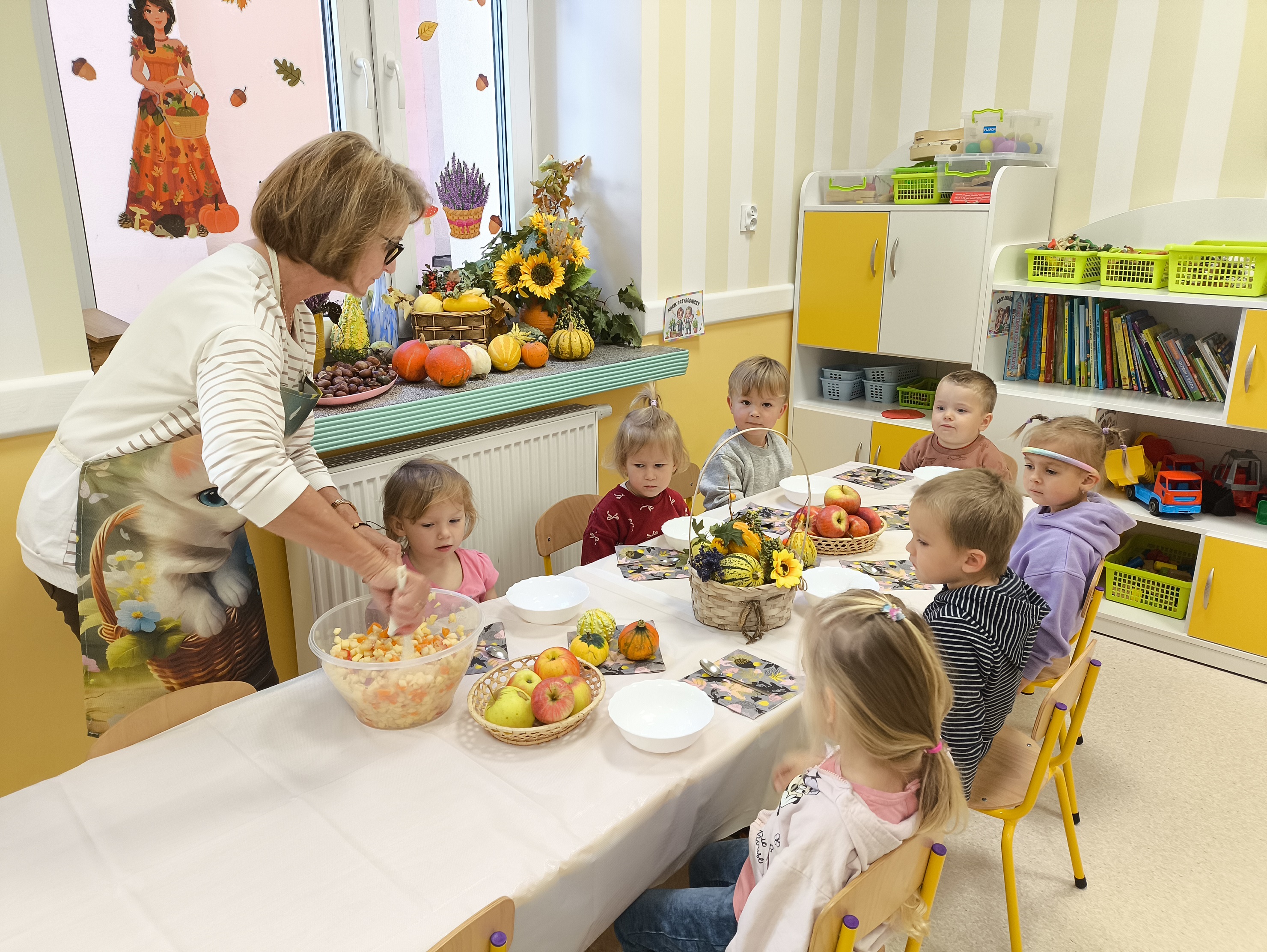 W dniu 23.09.2025 nasze przedszkolaki powitały nową porę roku, jaką jest JESIEŃ. Tego dnia wszyscy przyszli ubrani do przedszkola w kolorach charakterystycznych dla Jesieni. Dzieci poznały dary jesieni, opowiedziały wspólnie jak zmienia się przyroda, a także śpiewały jesienne piosenki. M. Marks