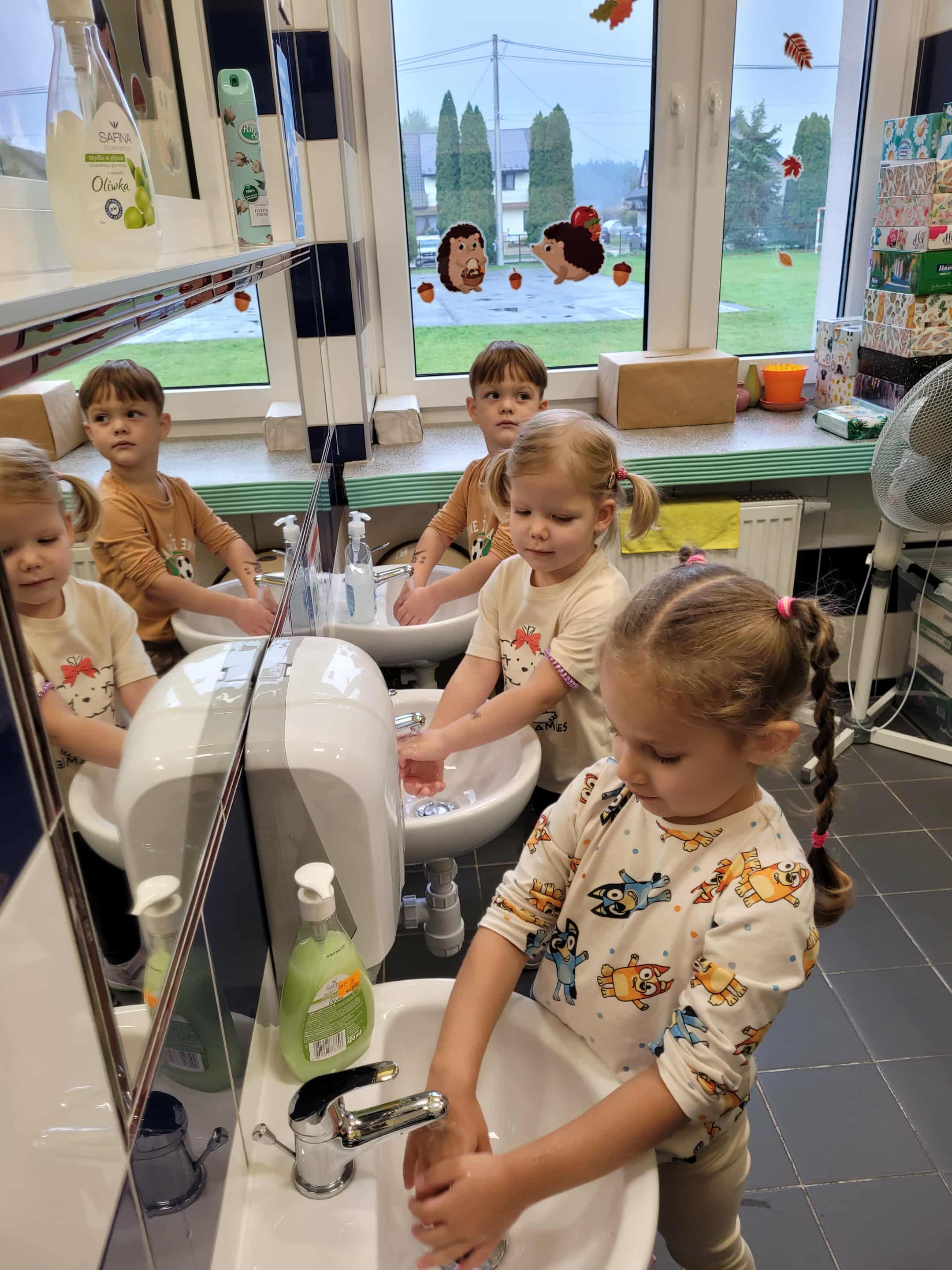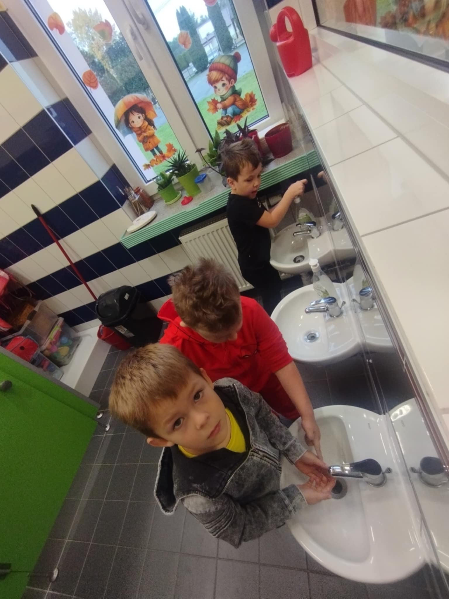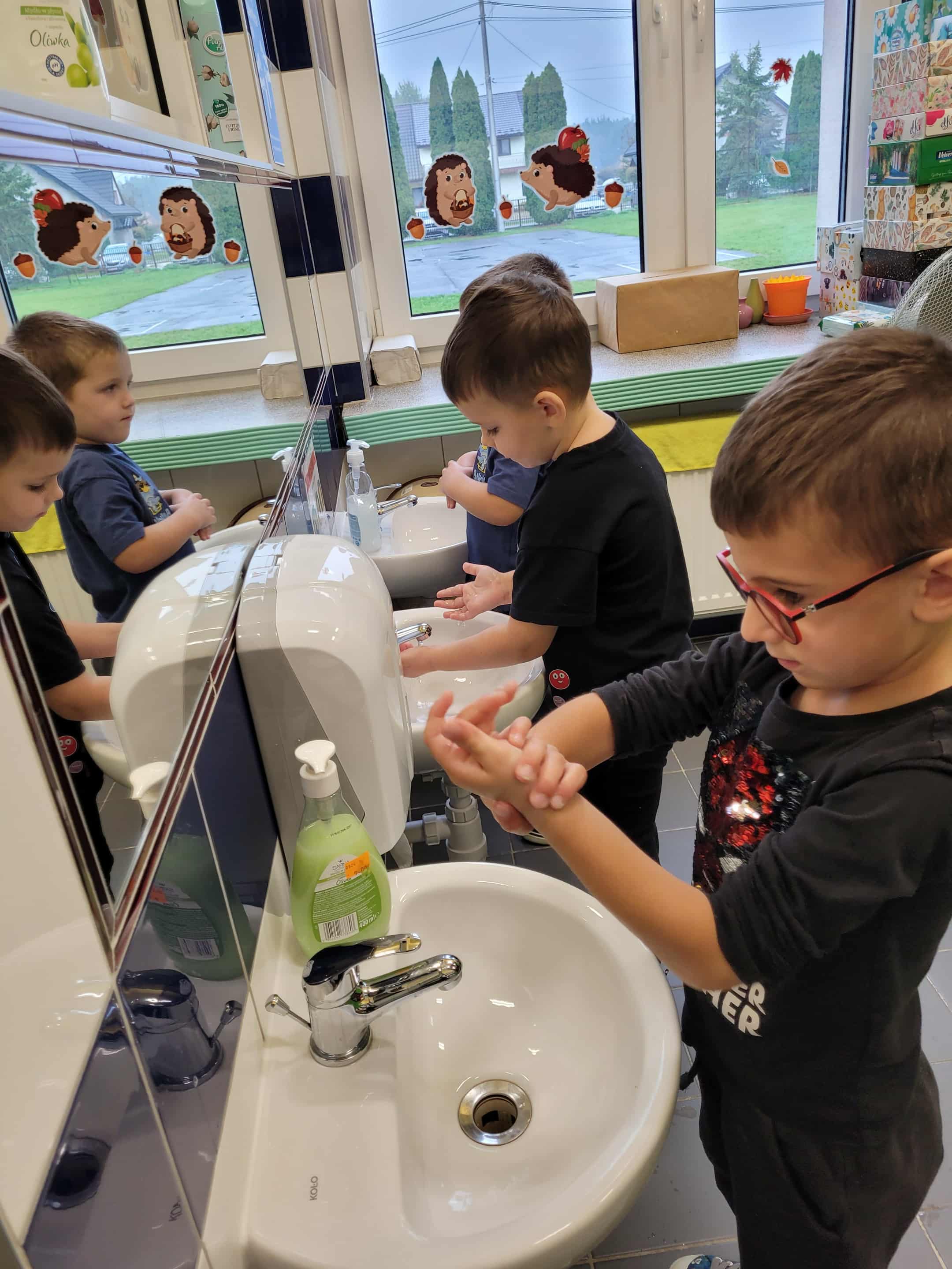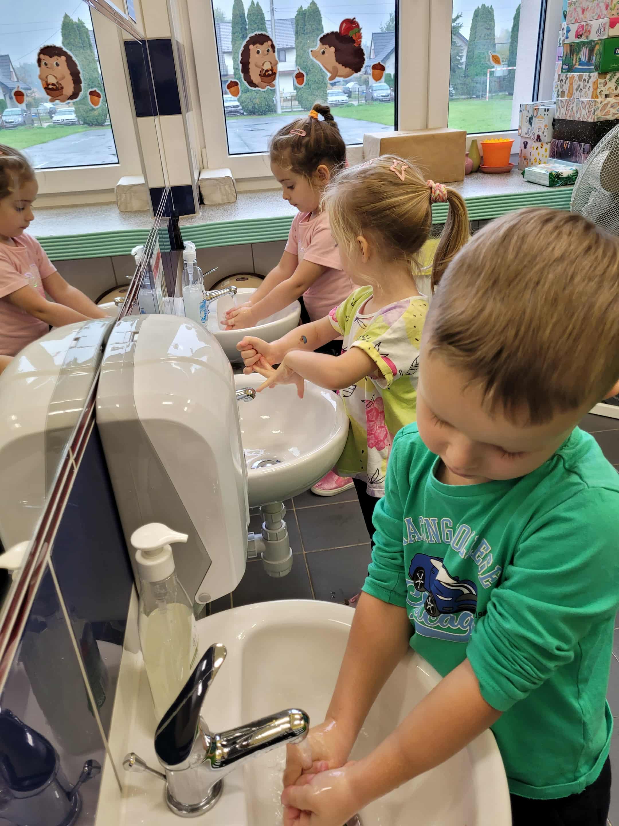 15 października obchodziliśmy w naszym przedszkolu Światowy Dzień Mycia Rąk. Podczas zajęć odbyły się rozmowy na temat zarazków, bakterii i wirusów, które dostają się do naszego organizmu poprzez brudne ręce. Dzieci dowiedziały się, jakie znaczenie dla zdrowia ma czyste i dokładne mycie rąk. Omówiliśmy także schemat mycia rąk oraz zastosowaliśmy go w praktyce. Wspólnie wykonaliśmy prace plastyczne promujące mycie rąk. Nie zabrakło też piosenek związanych z czynnościami samoobsługowymi i nawykami higienicznymi. M. Marks