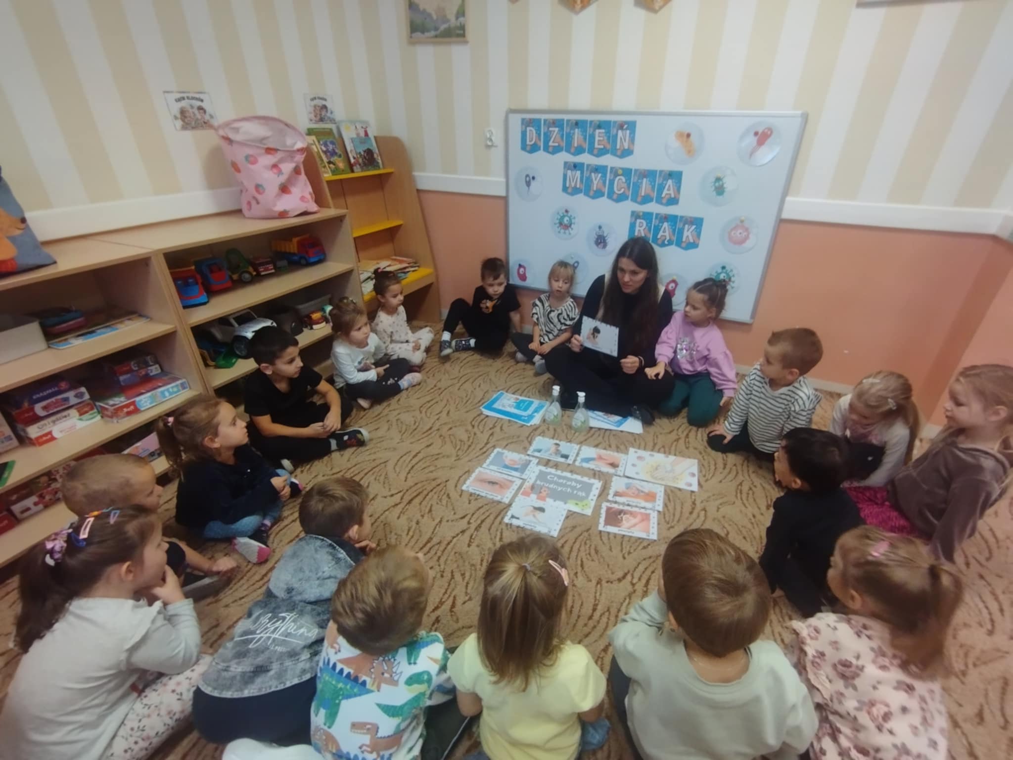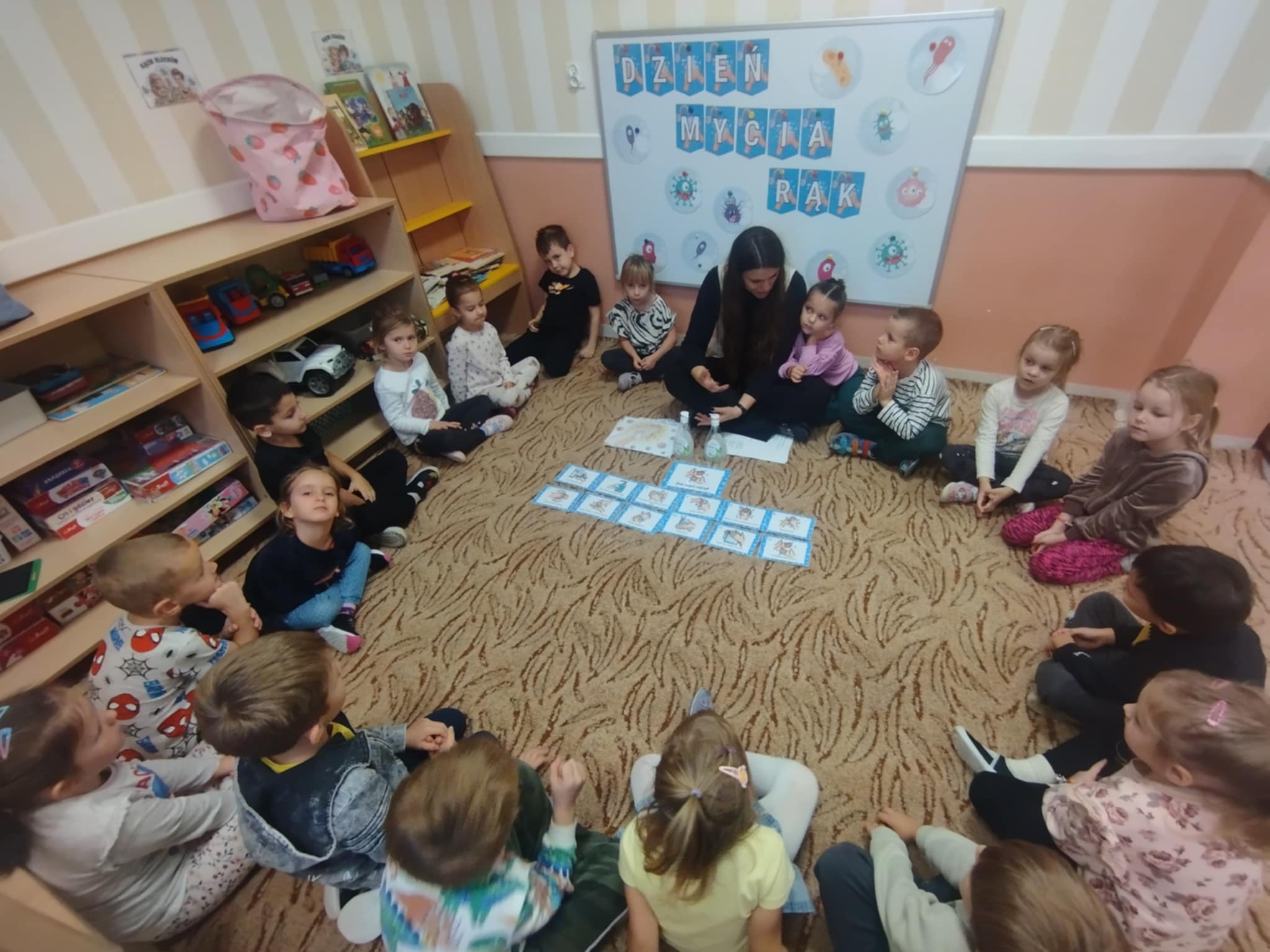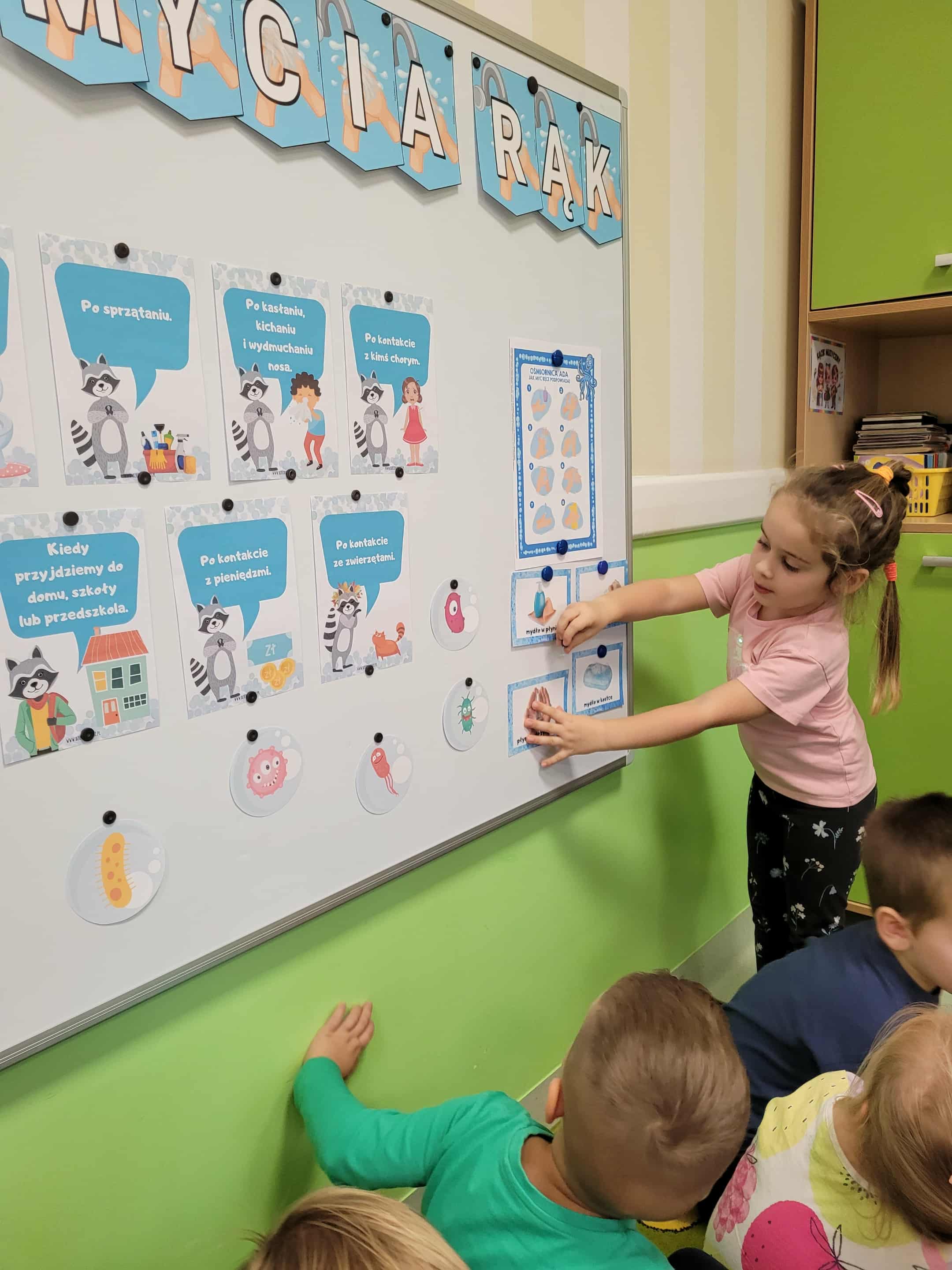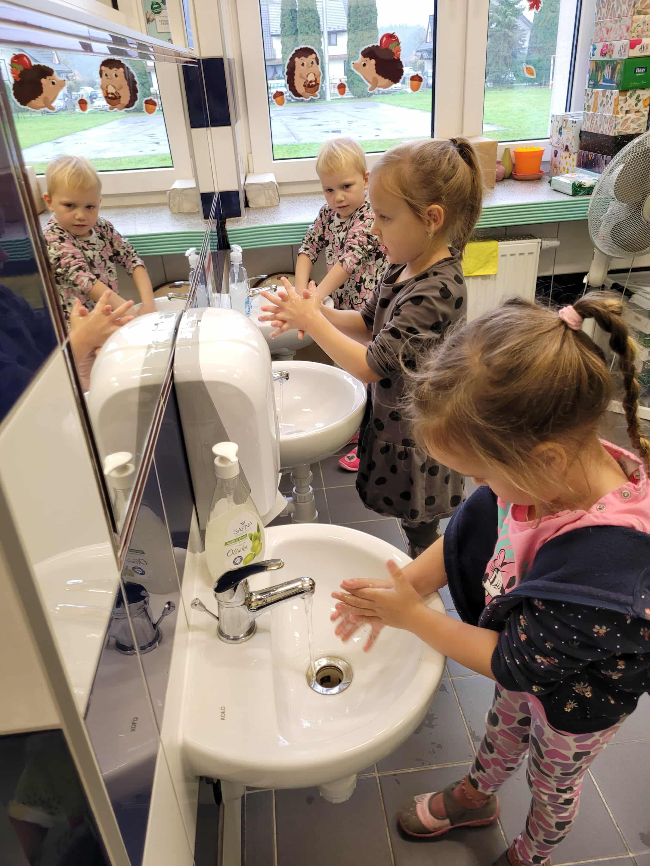 15 października obchodziliśmy w naszym przedszkolu Światowy Dzień Mycia Rąk. Podczas zajęć odbyły się rozmowy na temat zarazków, bakterii i wirusów, które dostają się do naszego organizmu poprzez brudne ręce. Dzieci dowiedziały się, jakie znaczenie dla zdrowia ma czyste i dokładne mycie rąk. Omówiliśmy także schemat mycia rąk oraz zastosowaliśmy go w praktyce. Wspólnie wykonaliśmy prace plastyczne promujące mycie rąk. Nie zabrakło też piosenek związanych z czynnościami samoobsługowymi i nawykami higienicznymi. M. Marks