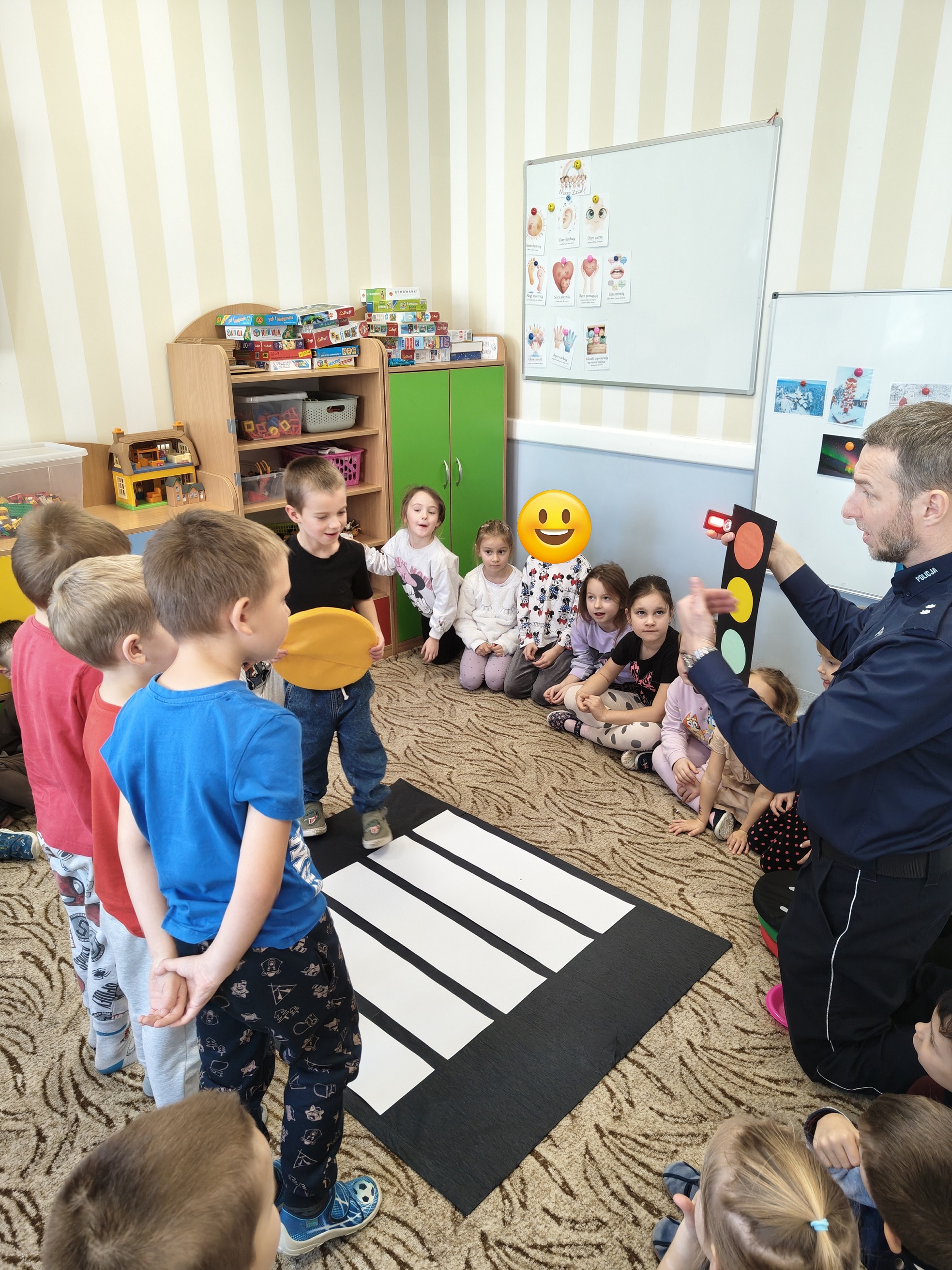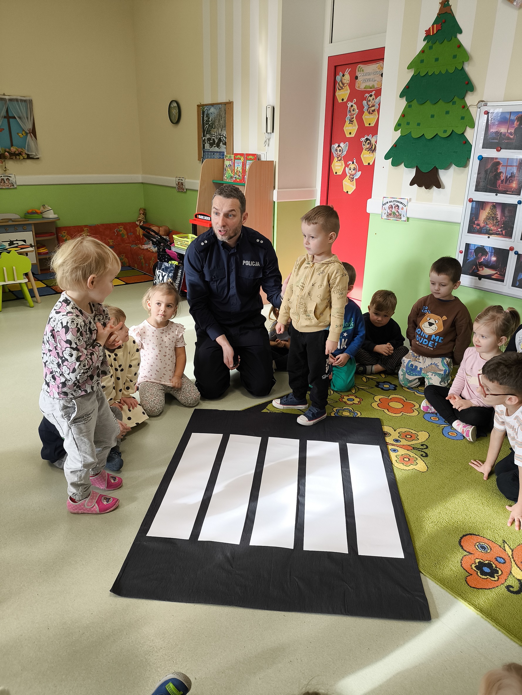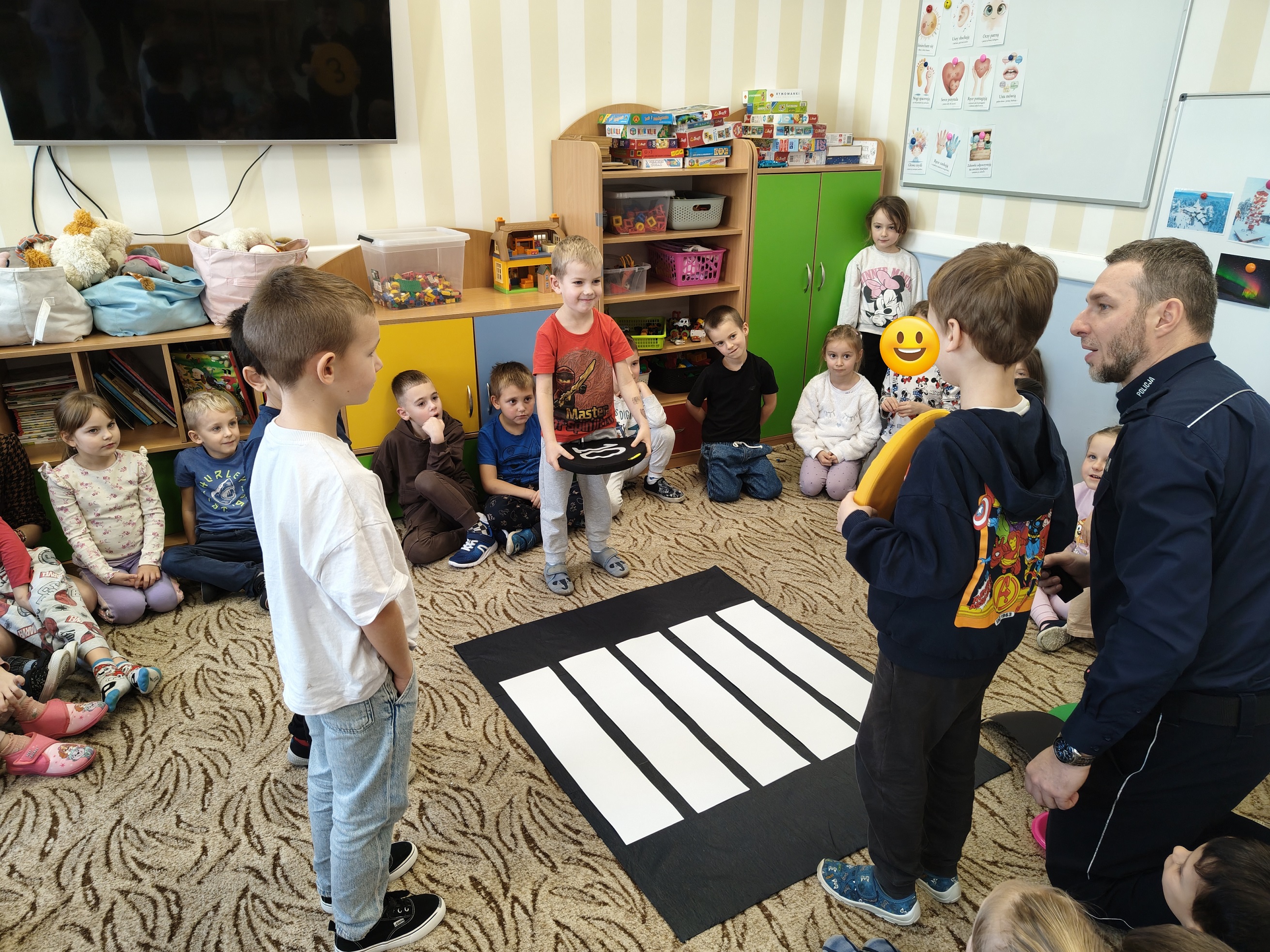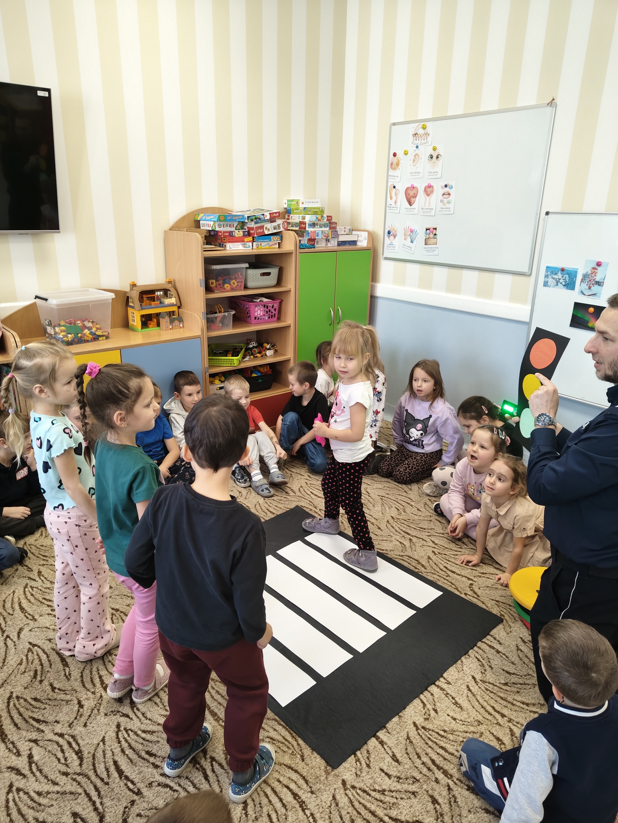 Dnia 2 grudnia nasze przedszkolaki odwiedził Pan Policjant. W spotkaniu najpierw uczestniczyły „Motylki i Pszczółki”, a potem „Biedronki i Żabki”. Dzieci poznały zasady ruchu drogowego, co wskazuje sygnalizator świetlny, a także jak ważne jest bezpieczeństwo na drodze. Podczas spotkania przedszkolaki uczestniczyły w zabawie, dzięki której utrwalały zdobytą wiedzę. Był to dzień pełen ciekawych i cennych wiadomości. M. Marks