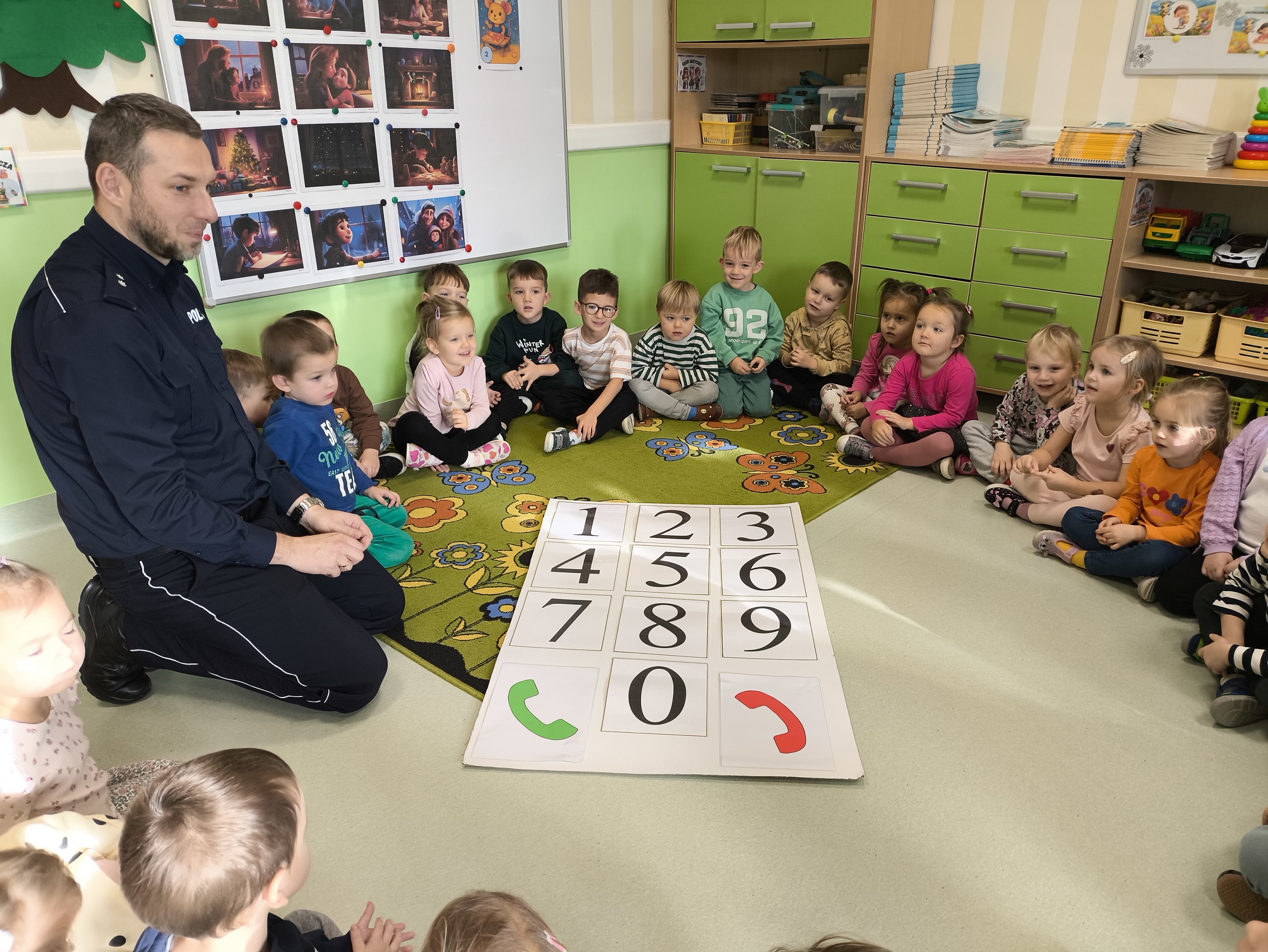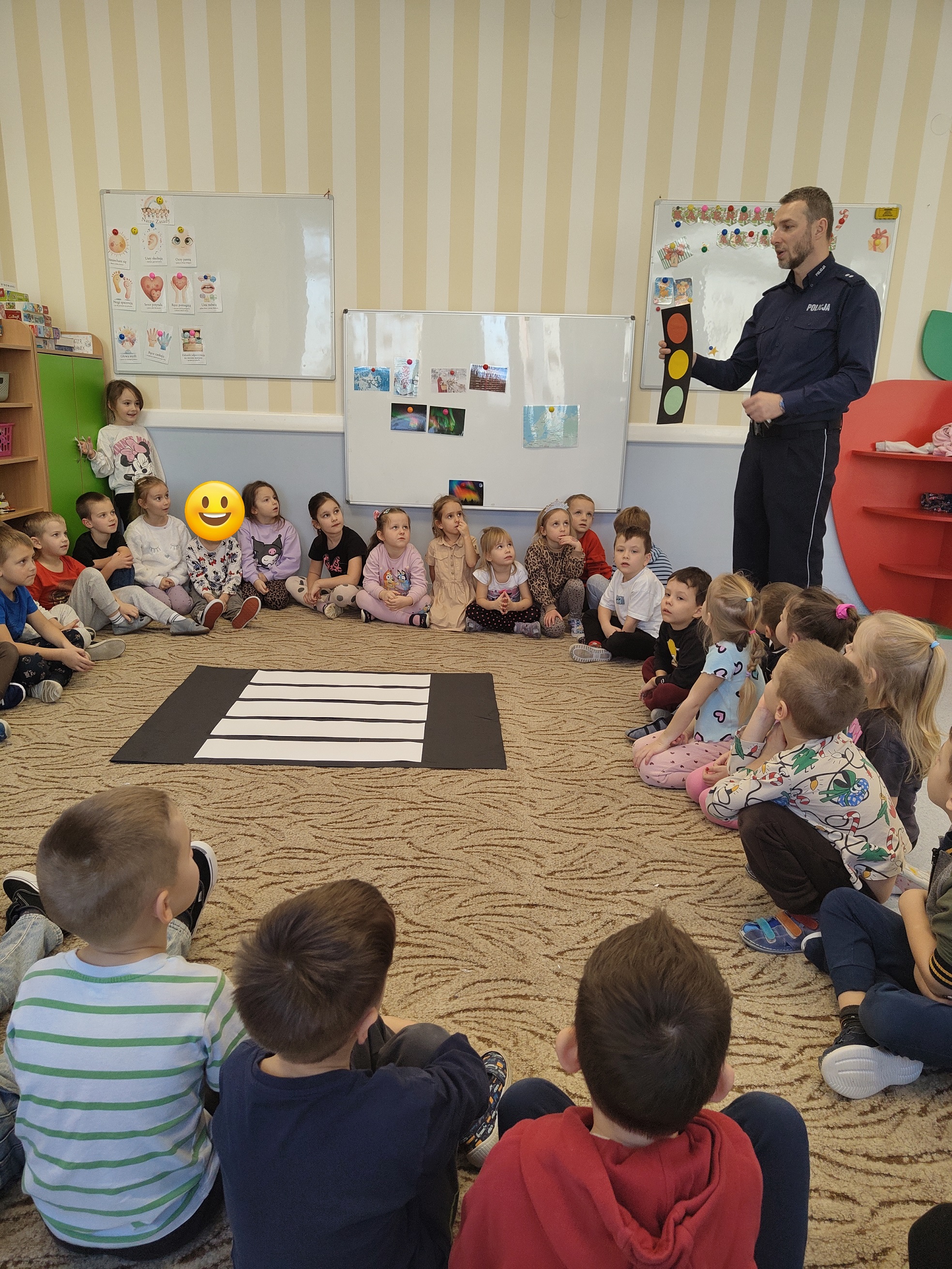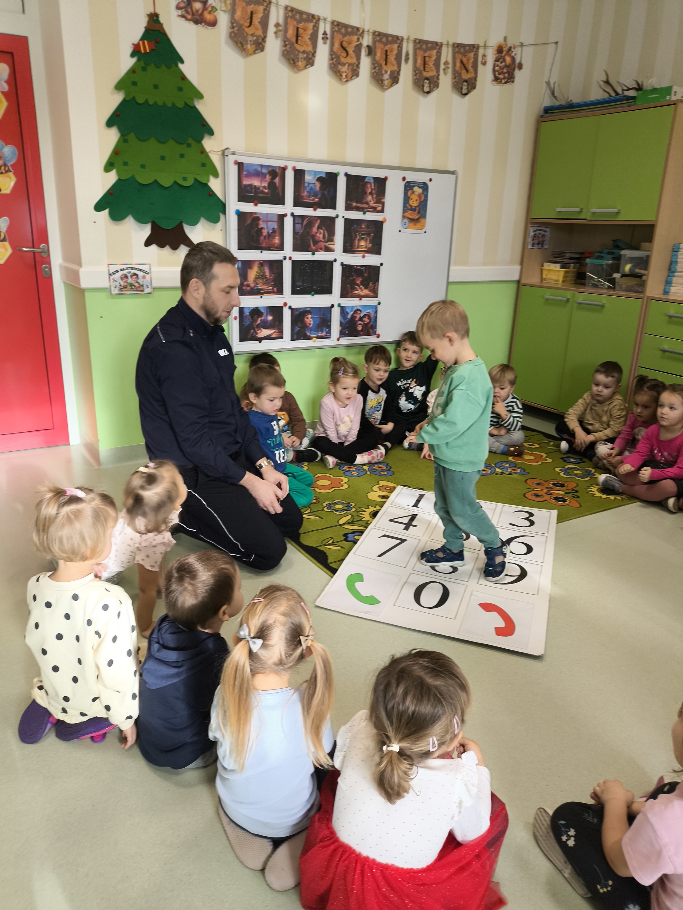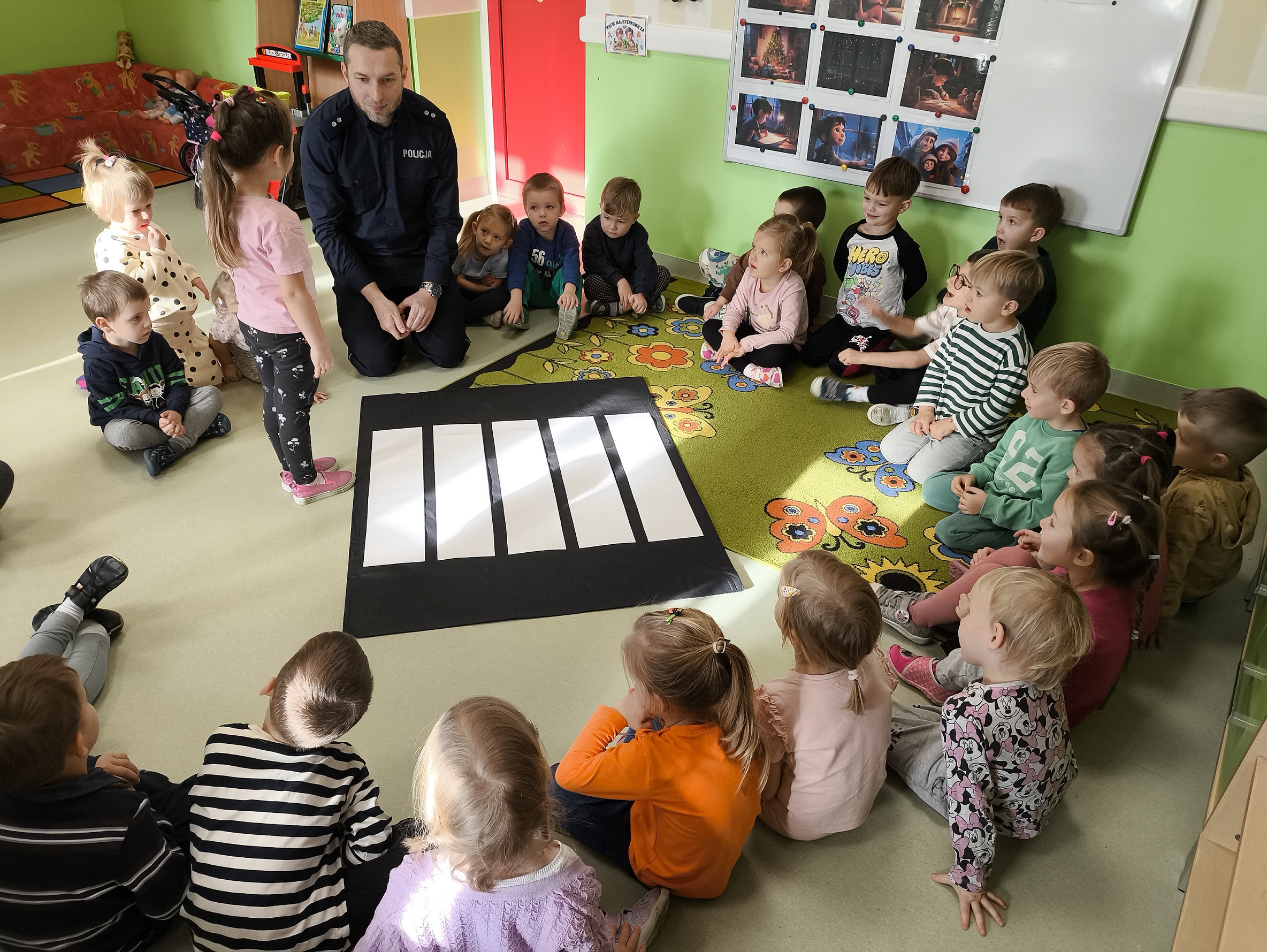 Dnia 2 grudnia nasze przedszkolaki odwiedził Pan Policjant. W spotkaniu najpierw uczestniczyły „Motylki i Pszczółki”, a potem „Biedronki i Żabki”. Dzieci poznały zasady ruchu drogowego, co wskazuje sygnalizator świetlny, a także jak ważne jest bezpieczeństwo na drodze. Podczas spotkania przedszkolaki uczestniczyły w zabawie, dzięki której utrwalały zdobytą wiedzę. Był to dzień pełen ciekawych i cennych wiadomości. M. Marks