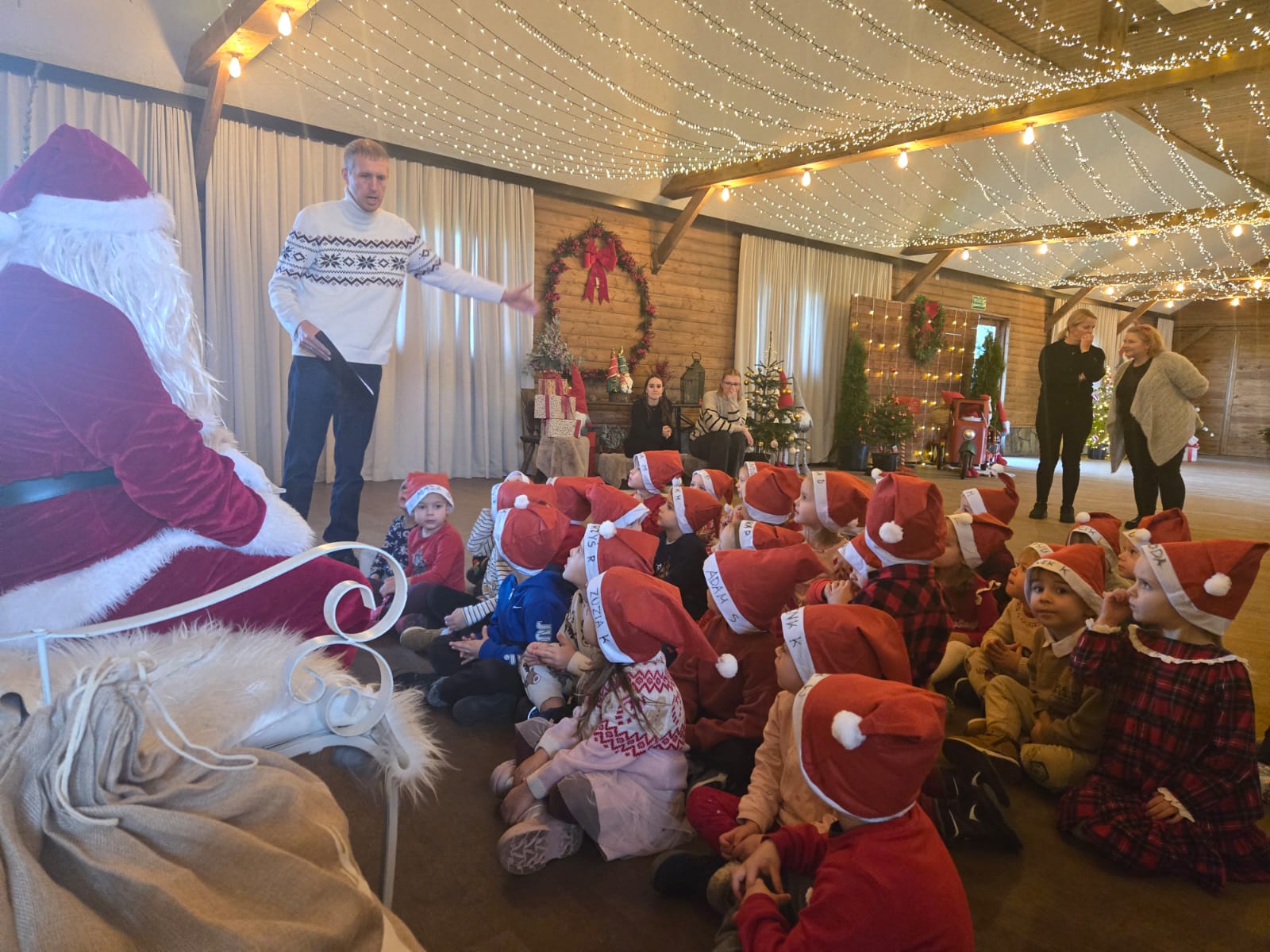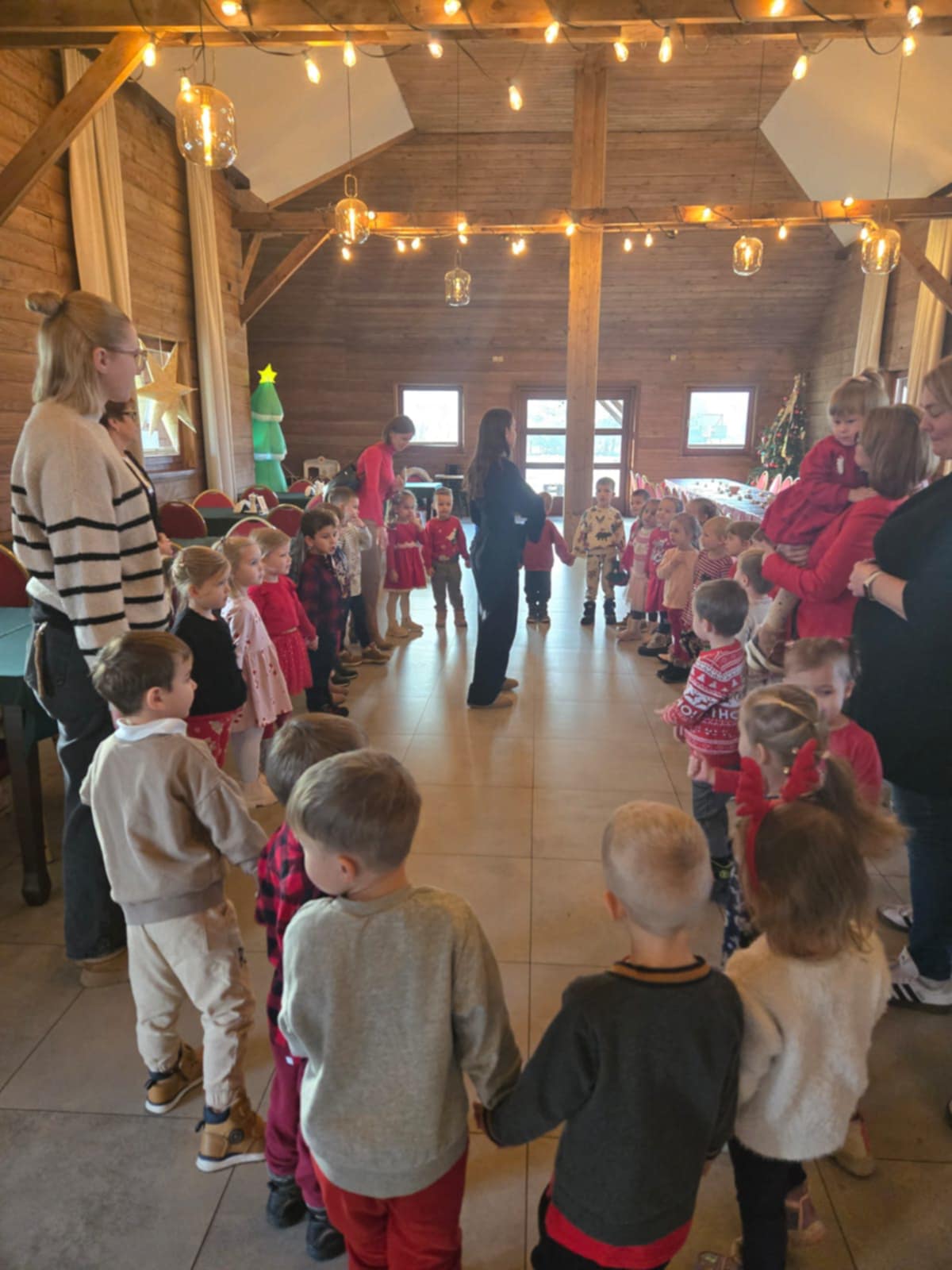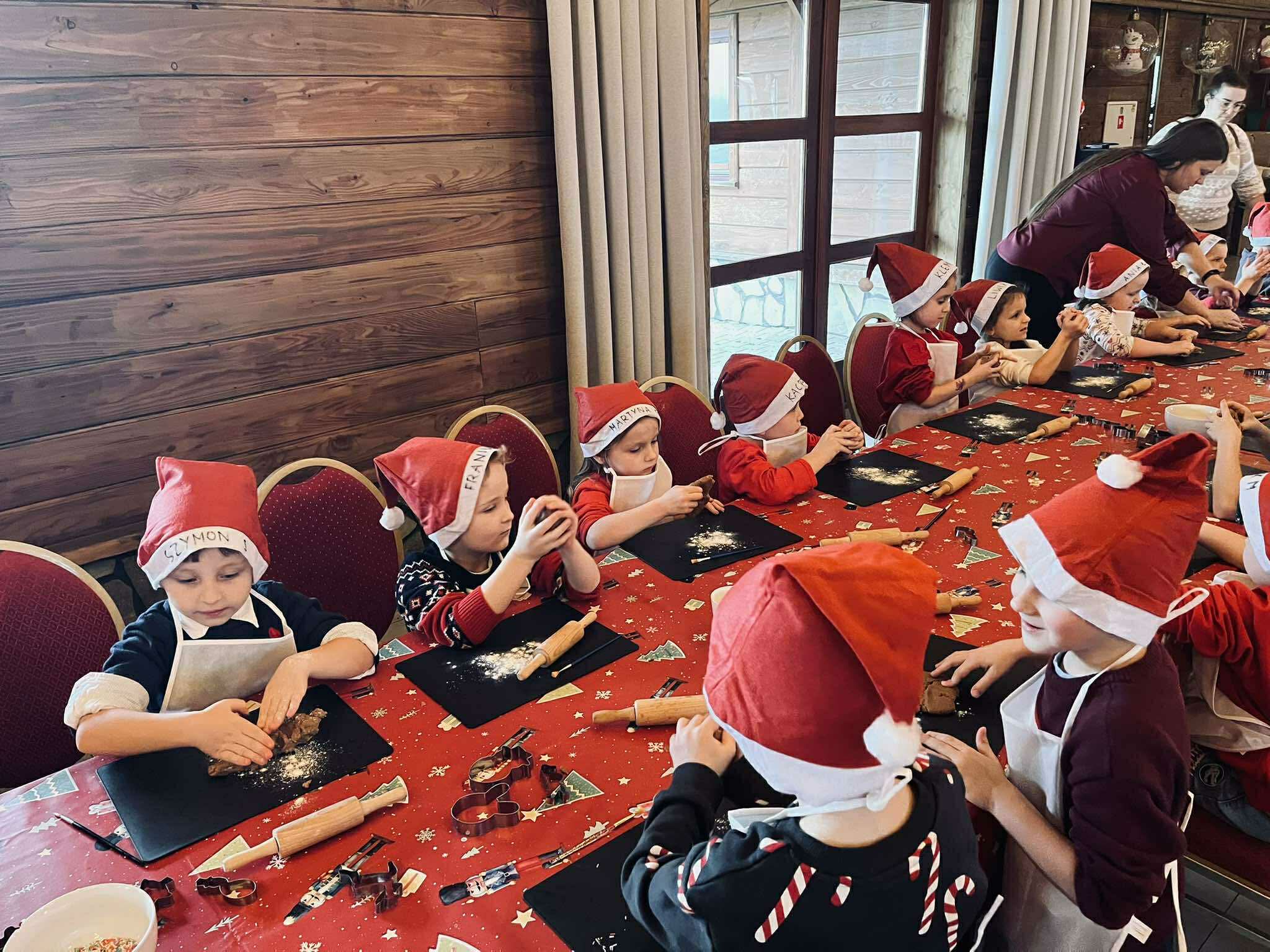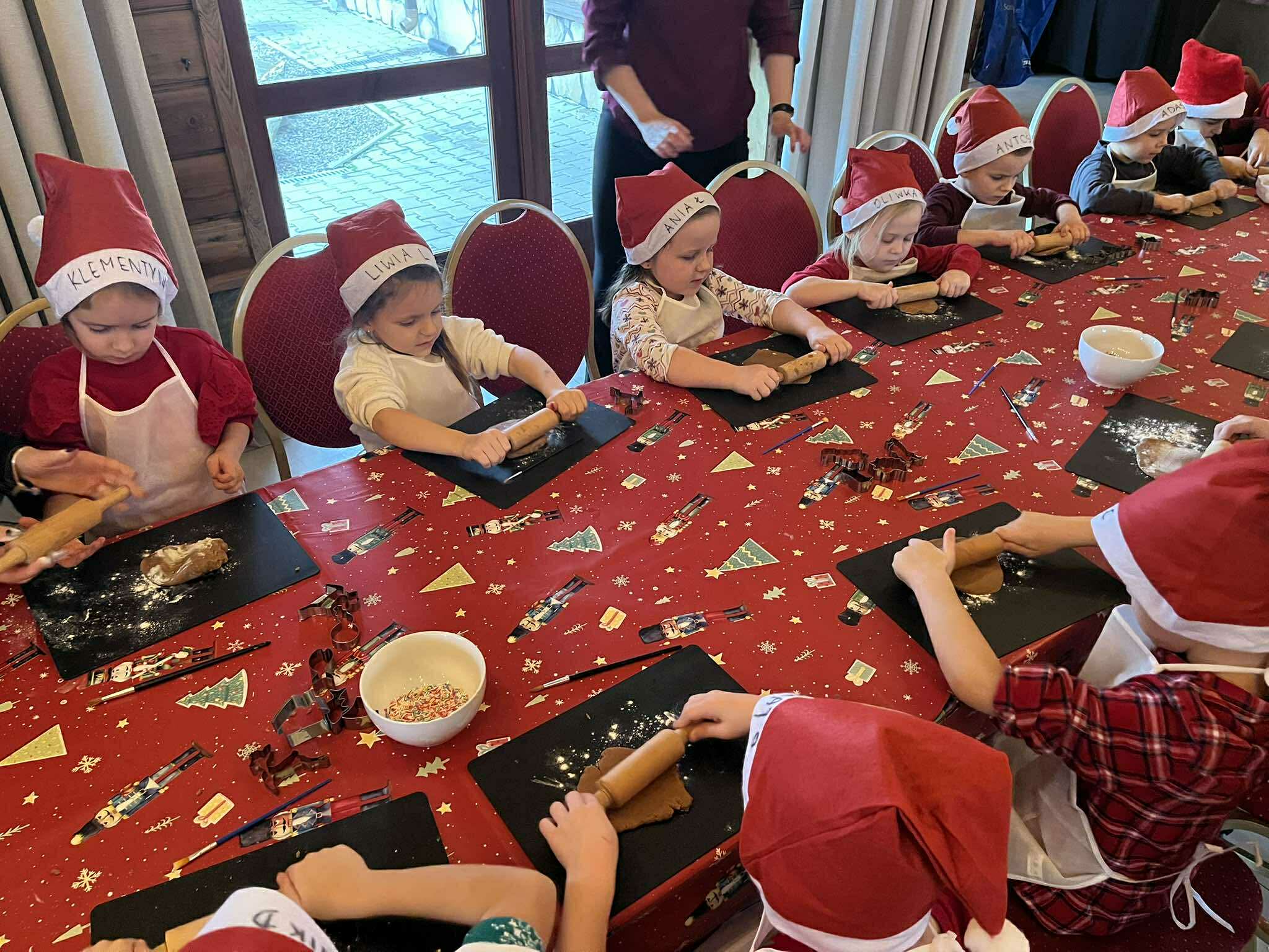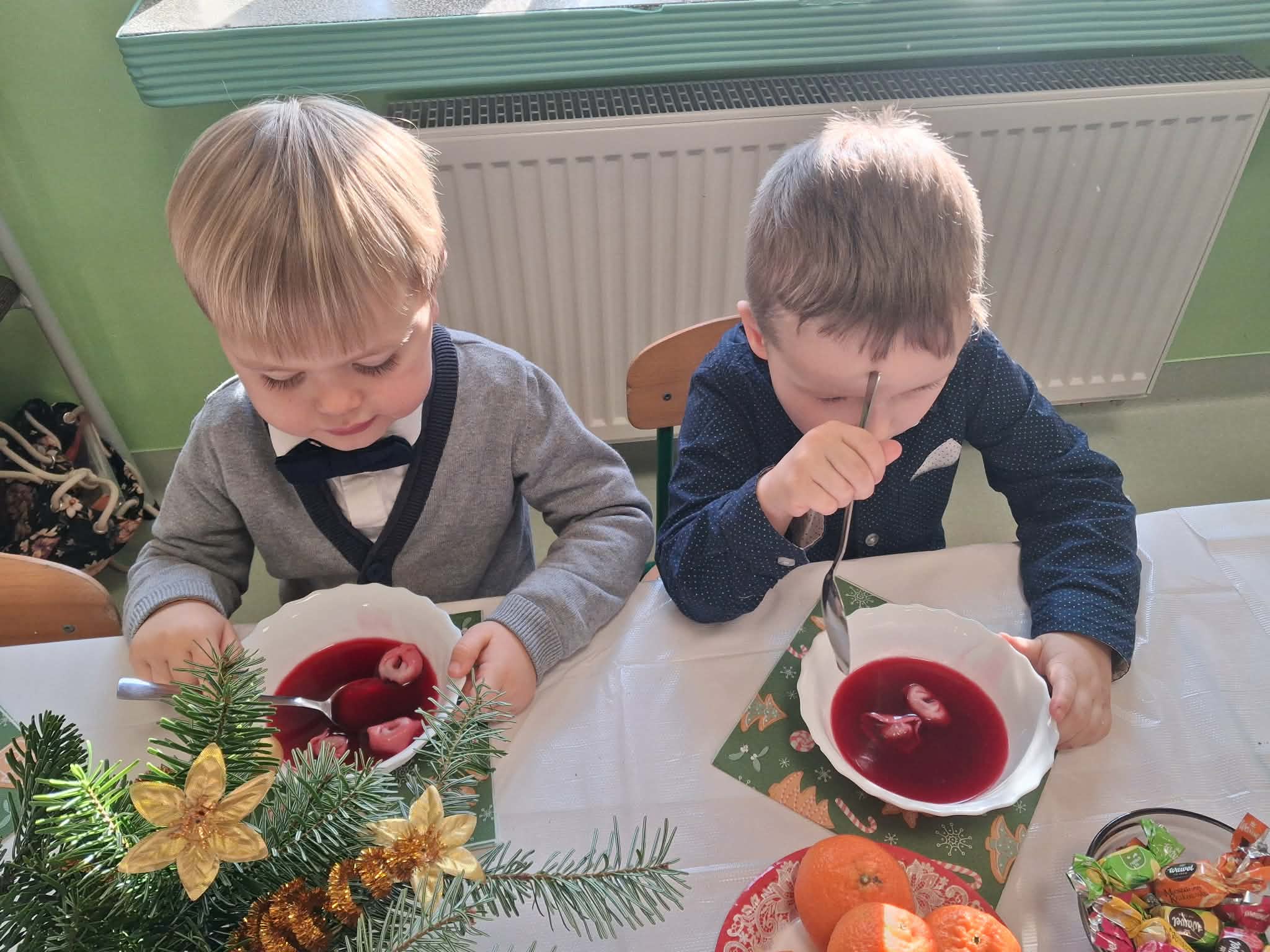 W piątek 19 grudnia odbyła się w naszym przedszkolu Wigilia. Święta Bożego Narodzenia to magiczny czas. Także w naszym przedszkolu nastał wspaniały moment- Wigilia, Boże Narodzenie! Dzieci wspólnie z Paniami kolędowały, składały sobie życzenia i jadły wspólny świąteczny obiad przy pięknie udekorowanym stole. Dzieci zajadały tradycyjny barszczyk i rybkę, ale i nie zabrakło świątecznych ciasteczek i owoców. Takie podniosłe chwile nie tylko utrwalają dzieciom znajomość tradycji i zwyczajów świątecznych lecz również, co najważniejsze wzmacniają bliskie serdeczne relacje. M.Marks