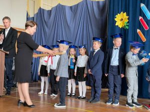 29 października 2025 r. odbyła się w naszej szkole uroczystość pasowania na ucznia. W tym dniu pierwszoklasiści zostali oficjalnie przyjęci do grona uczniów szkoły. Podczas uroczystości uczniowie pokazali, że potrafią pięknie śpiewać i recytować wiersze. Najważniejszą częścią uroczystości, na którą wszyscy czekali było ślubowanie oraz pasowanie wielkim ołówkiem przez panią dyrektor. Pierwszaki głośno