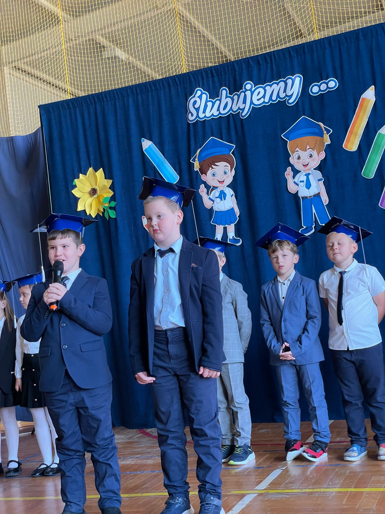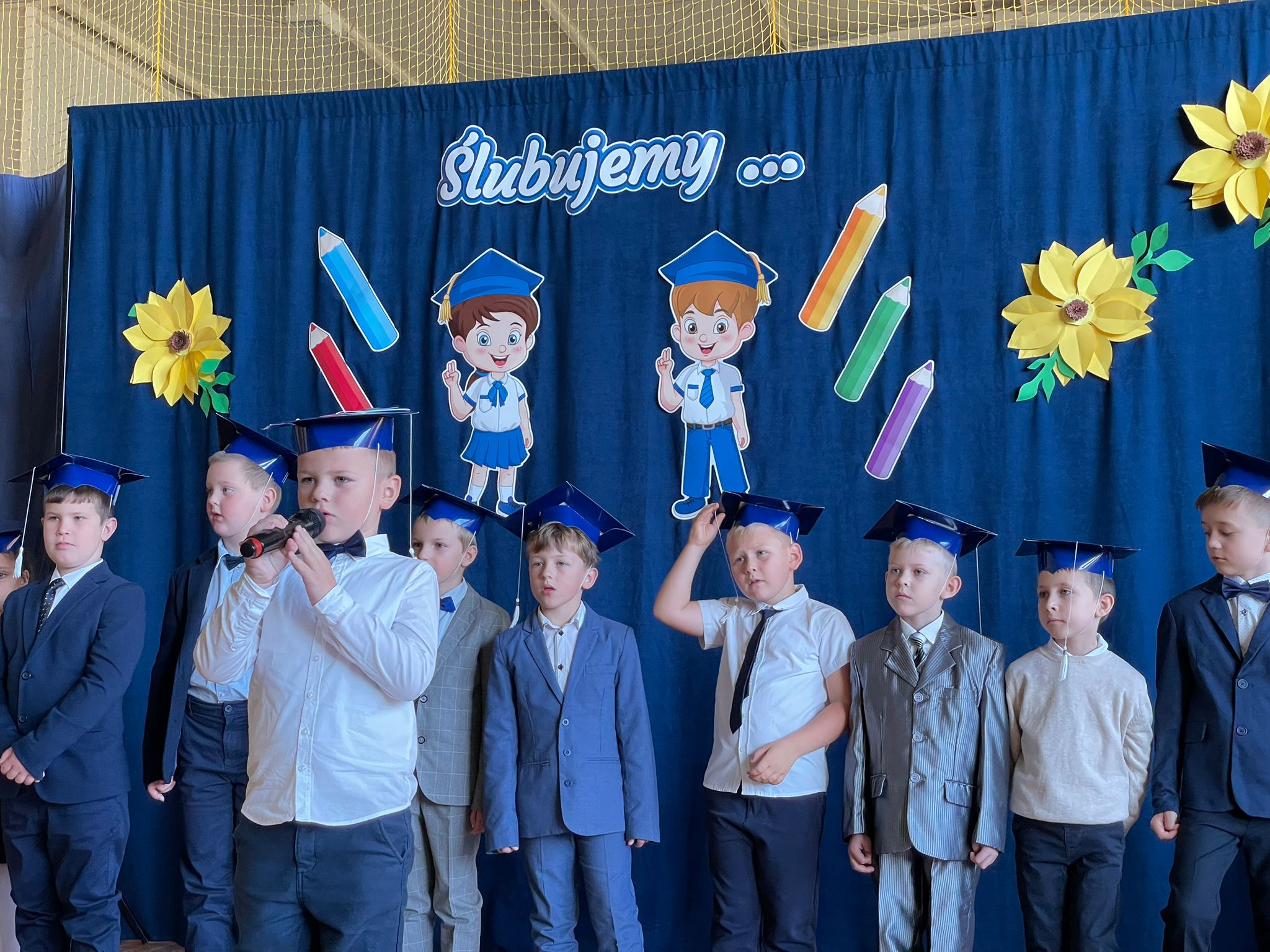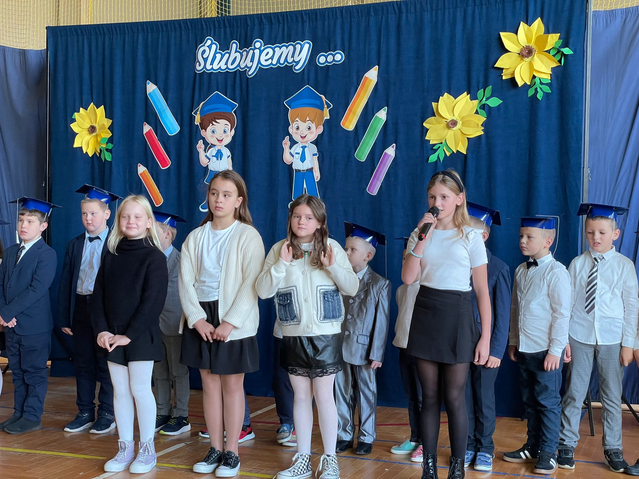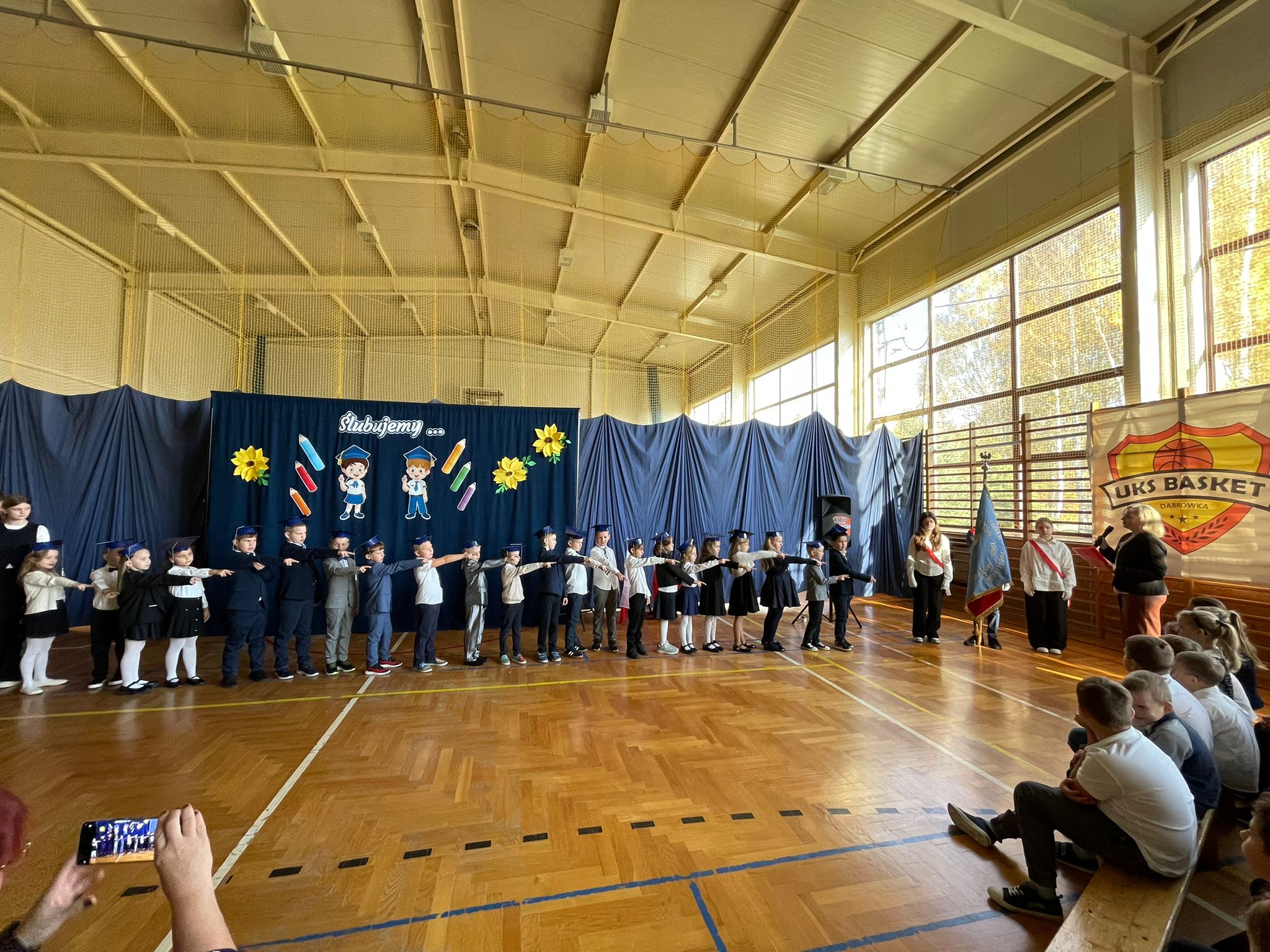 29 października 2025 r. odbyła się w naszej szkole uroczystość pasowania na ucznia. W tym dniu pierwszoklasiści zostali oficjalnie przyjęci do grona uczniów szkoły. Podczas uroczystości uczniowie pokazali, że potrafią pięknie śpiewać i recytować wiersze. Najważniejszą częścią uroczystości, na którą wszyscy czekali było ślubowanie oraz pasowanie wielkim ołówkiem przez panią dyrektor. Pierwszaki głośno i z przekonaniem przyrzekały być dobrymi i pilnymi uczniami oraz rzetelnie wypełniać swoje obowiązki. Wszystkim pierwszoklasistom życzymy wielu sukcesów na nowej drodze obowiązków szkolnych.