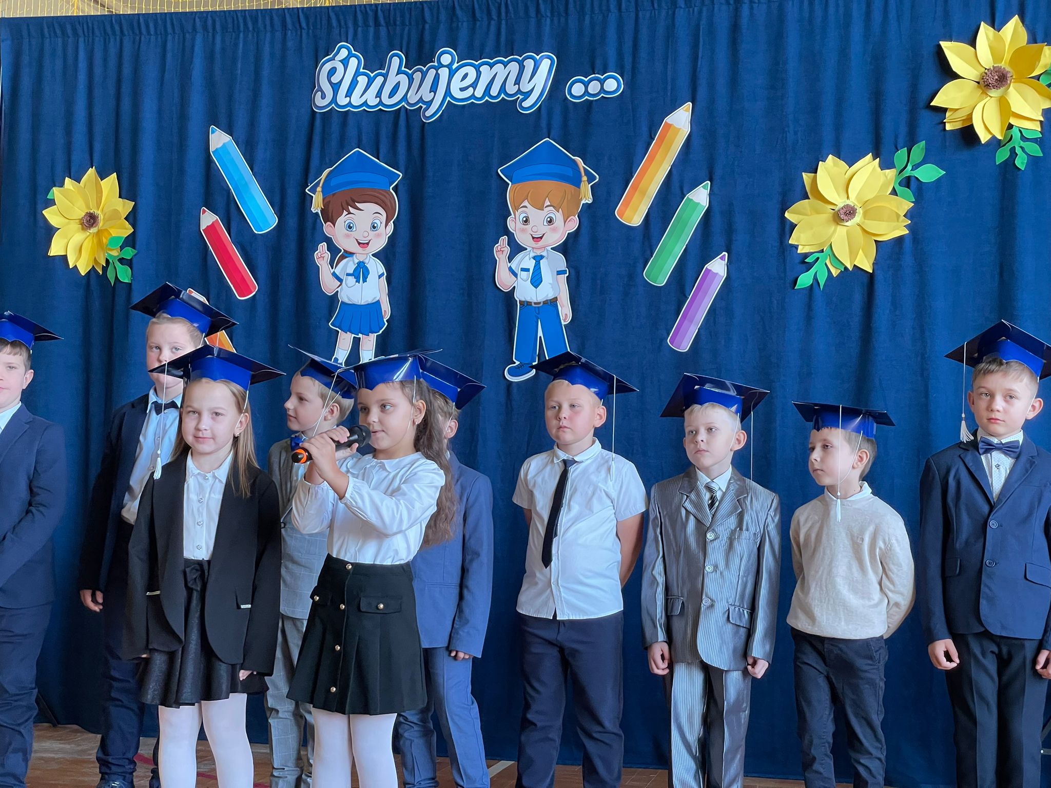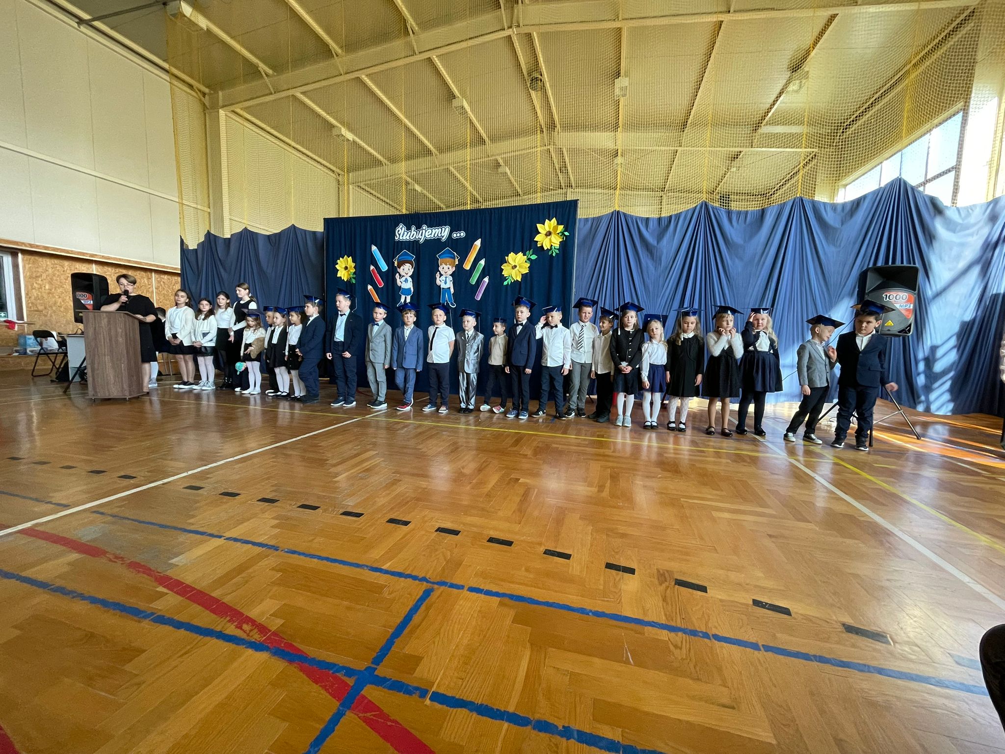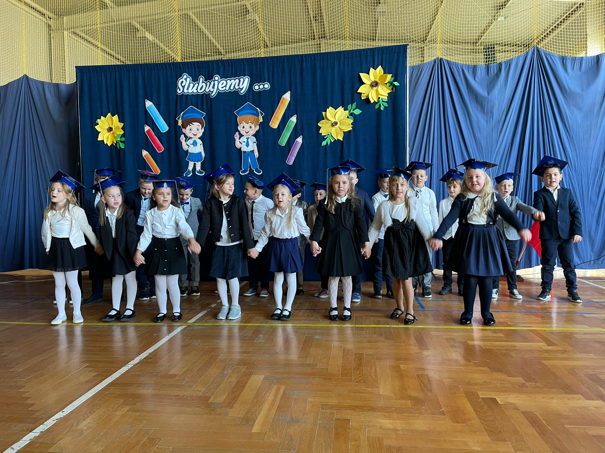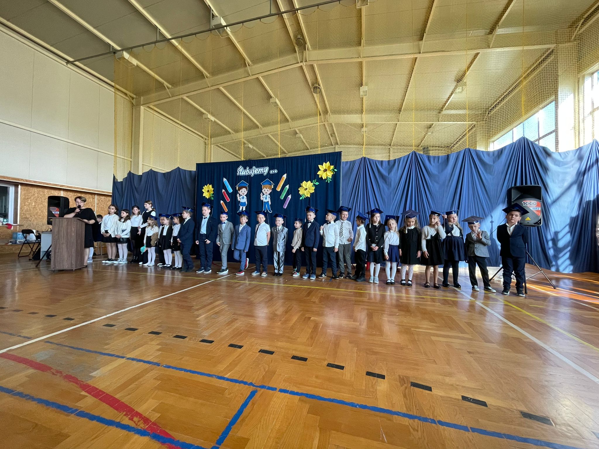 29 października 2025 r. odbyła się w naszej szkole uroczystość pasowania na ucznia. W tym dniu pierwszoklasiści zostali oficjalnie przyjęci do grona uczniów szkoły. Podczas uroczystości uczniowie pokazali, że potrafią pięknie śpiewać i recytować wiersze. Najważniejszą częścią uroczystości, na którą wszyscy czekali było ślubowanie oraz pasowanie wielkim ołówkiem przez panią dyrektor. Pierwszaki głośno i z przekonaniem przyrzekały być dobrymi i pilnymi uczniami oraz rzetelnie wypełniać swoje obowiązki. Wszystkim pierwszoklasistom życzymy wielu sukcesów na nowej drodze obowiązków szkolnych.