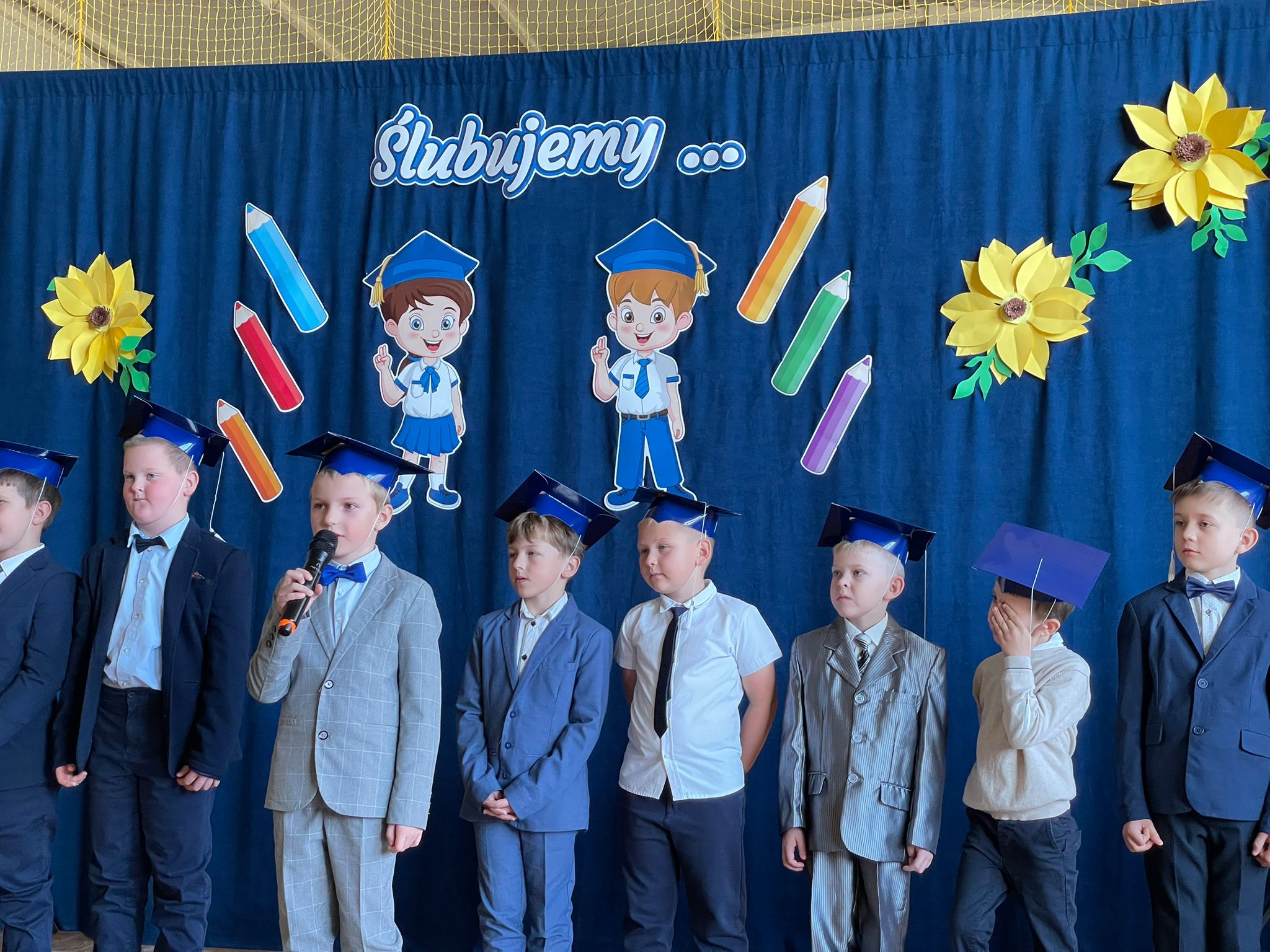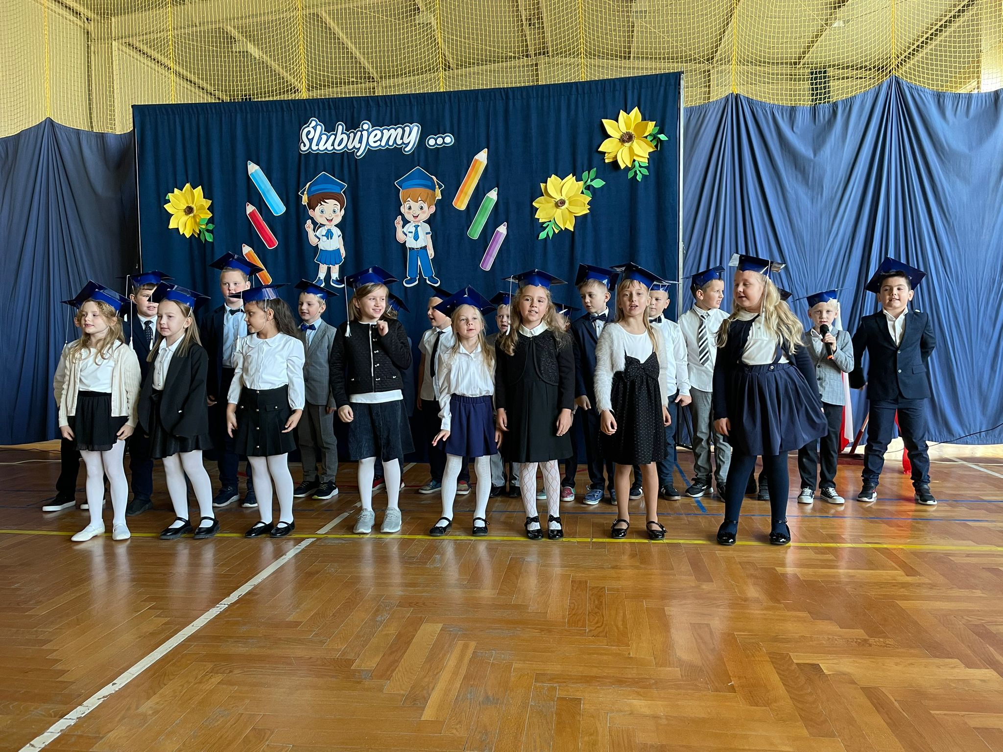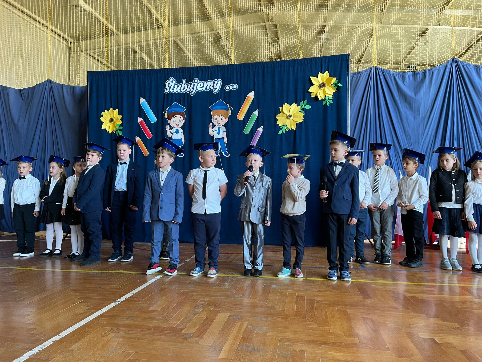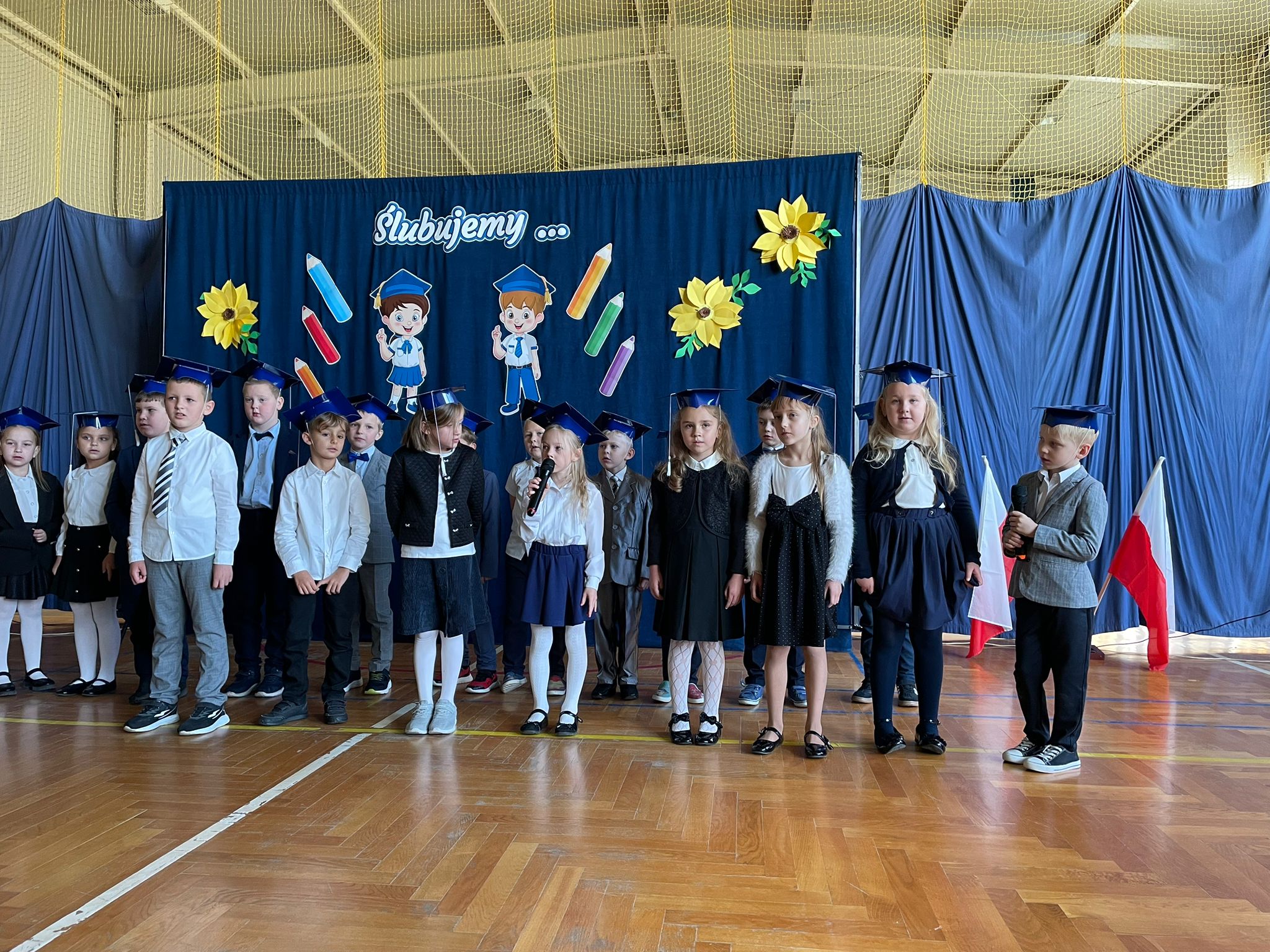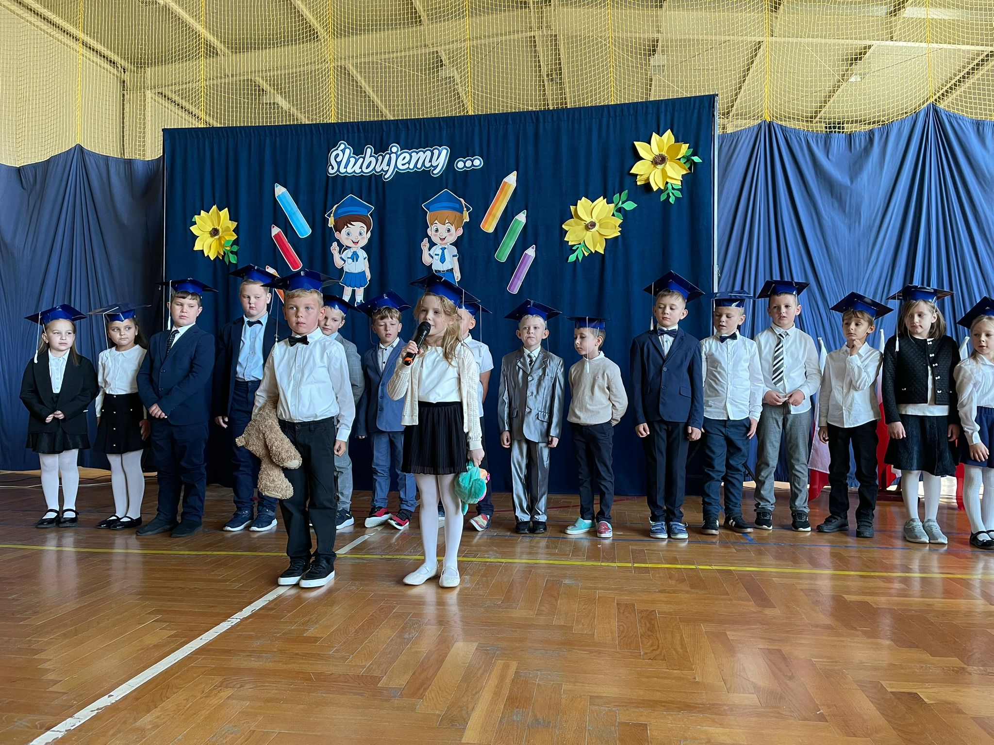 29 października 2025 r. odbyła się w naszej szkole uroczystość pasowania na ucznia. W tym dniu pierwszoklasiści zostali oficjalnie przyjęci do grona uczniów szkoły. Podczas uroczystości uczniowie pokazali, że potrafią pięknie śpiewać i recytować wiersze. Najważniejszą częścią uroczystości, na którą wszyscy czekali było ślubowanie oraz pasowanie wielkim ołówkiem przez panią dyrektor. Pierwszaki głośno i z przekonaniem przyrzekały być dobrymi i pilnymi uczniami oraz rzetelnie wypełniać swoje obowiązki. Wszystkim pierwszoklasistom życzymy wielu sukcesów na nowej drodze obowiązków szkolnych.