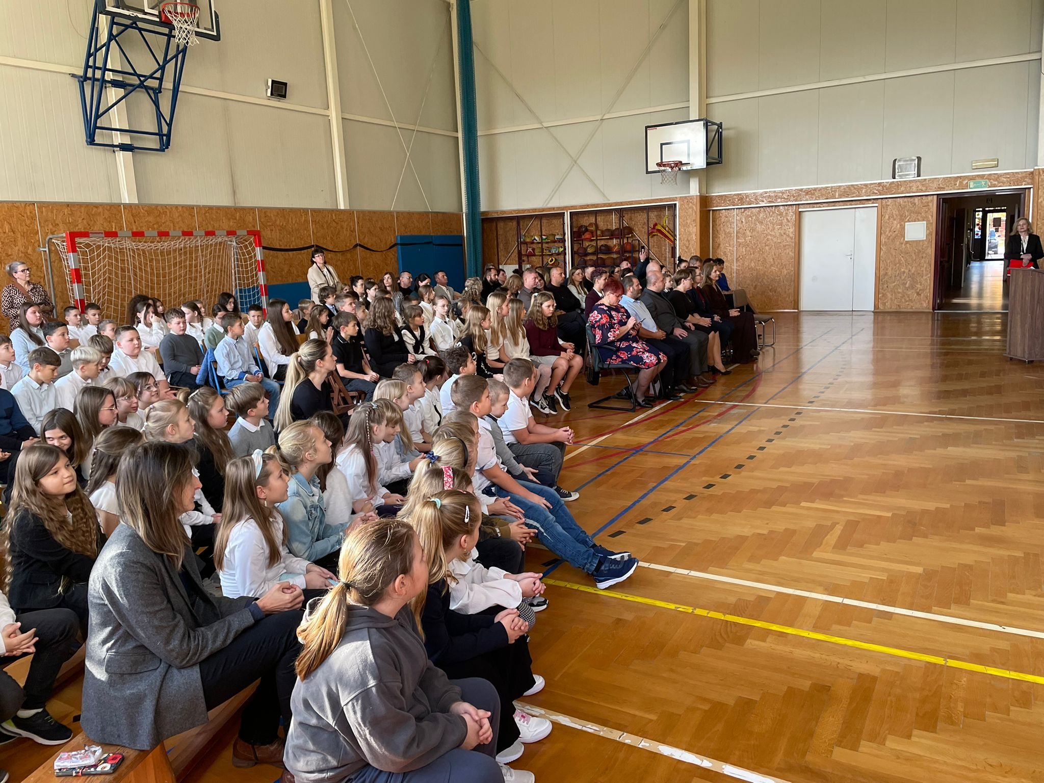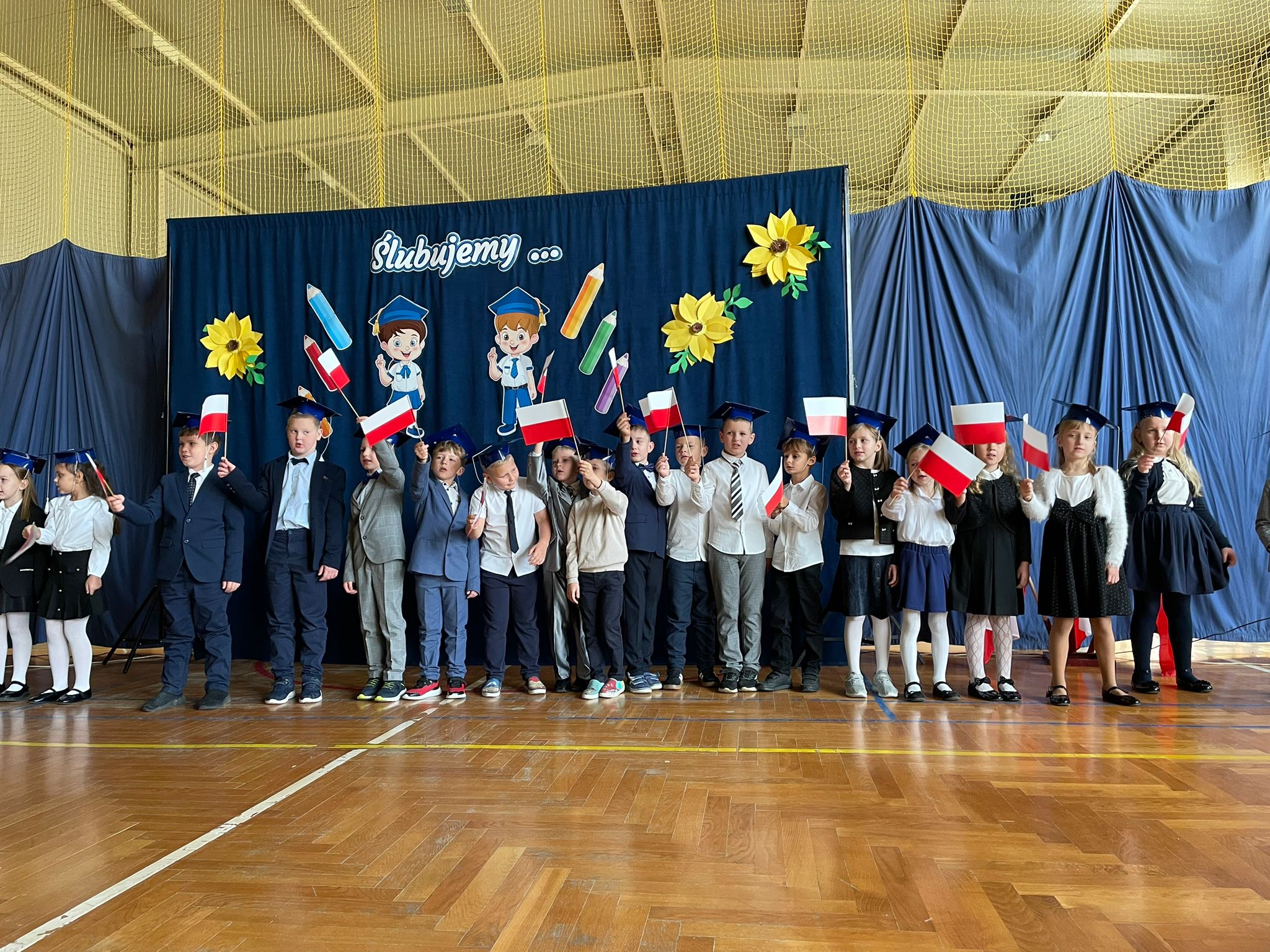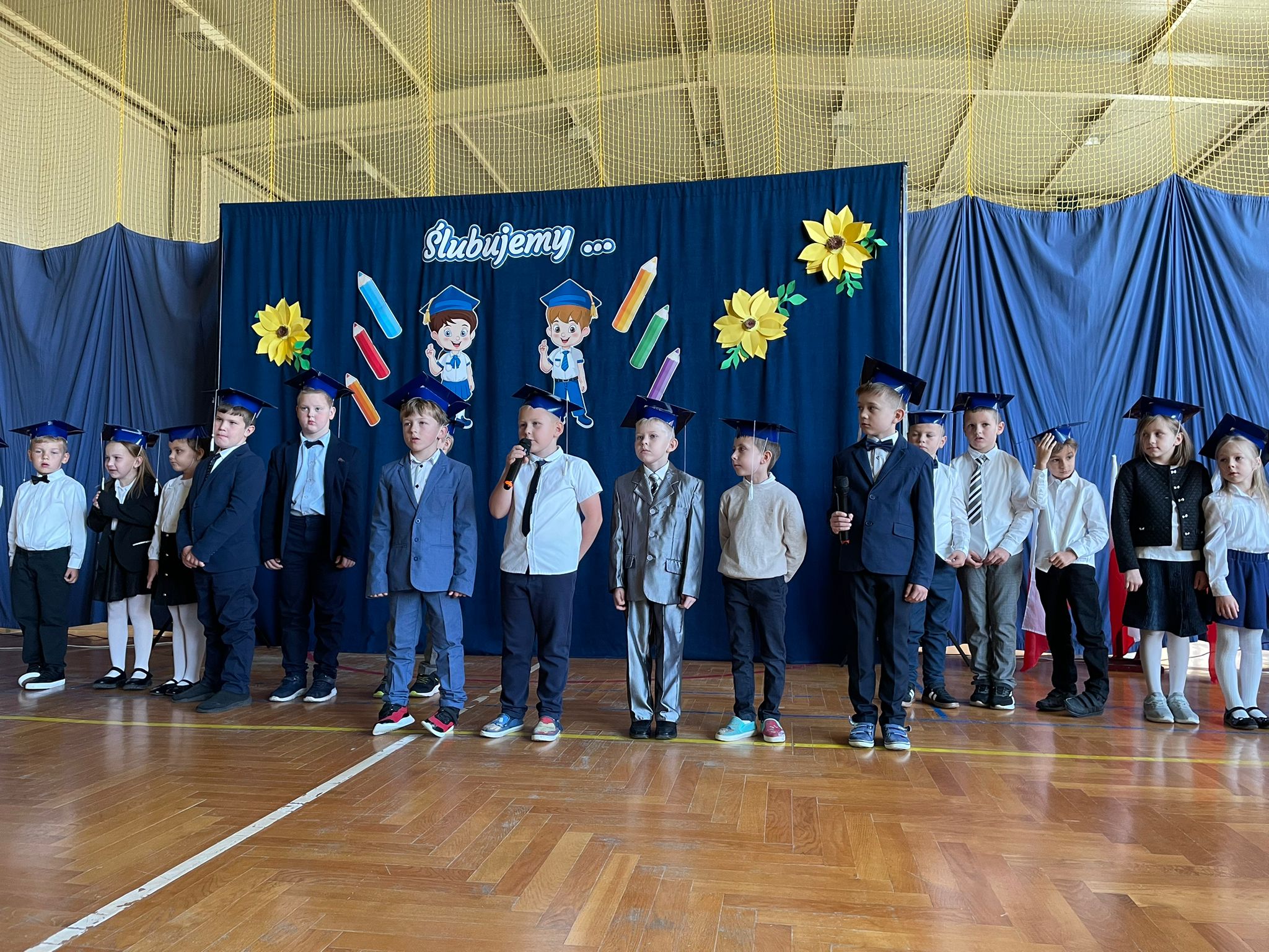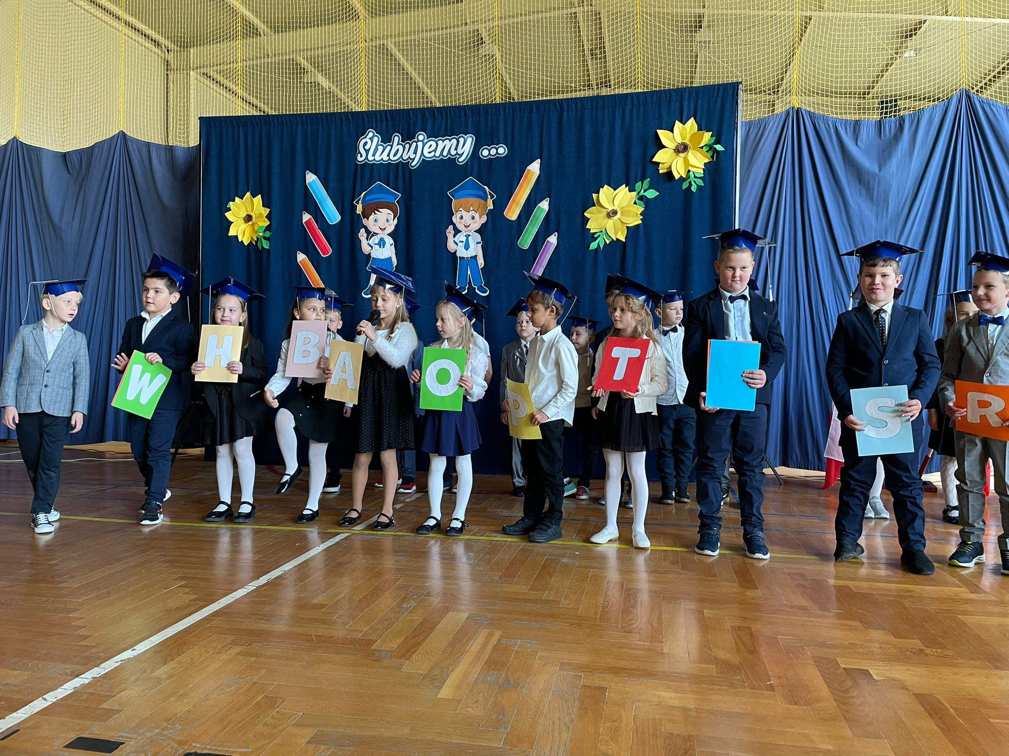 29 października 2025 r. odbyła się w naszej szkole uroczystość pasowania na ucznia. W tym dniu pierwszoklasiści zostali oficjalnie przyjęci do grona uczniów szkoły. Podczas uroczystości uczniowie pokazali, że potrafią pięknie śpiewać i recytować wiersze. Najważniejszą częścią uroczystości, na którą wszyscy czekali było ślubowanie oraz pasowanie wielkim ołówkiem przez panią dyrektor. Pierwszaki głośno i z przekonaniem przyrzekały być dobrymi i pilnymi uczniami oraz rzetelnie wypełniać swoje obowiązki. Wszystkim pierwszoklasistom życzymy wielu sukcesów na nowej drodze obowiązków szkolnych.