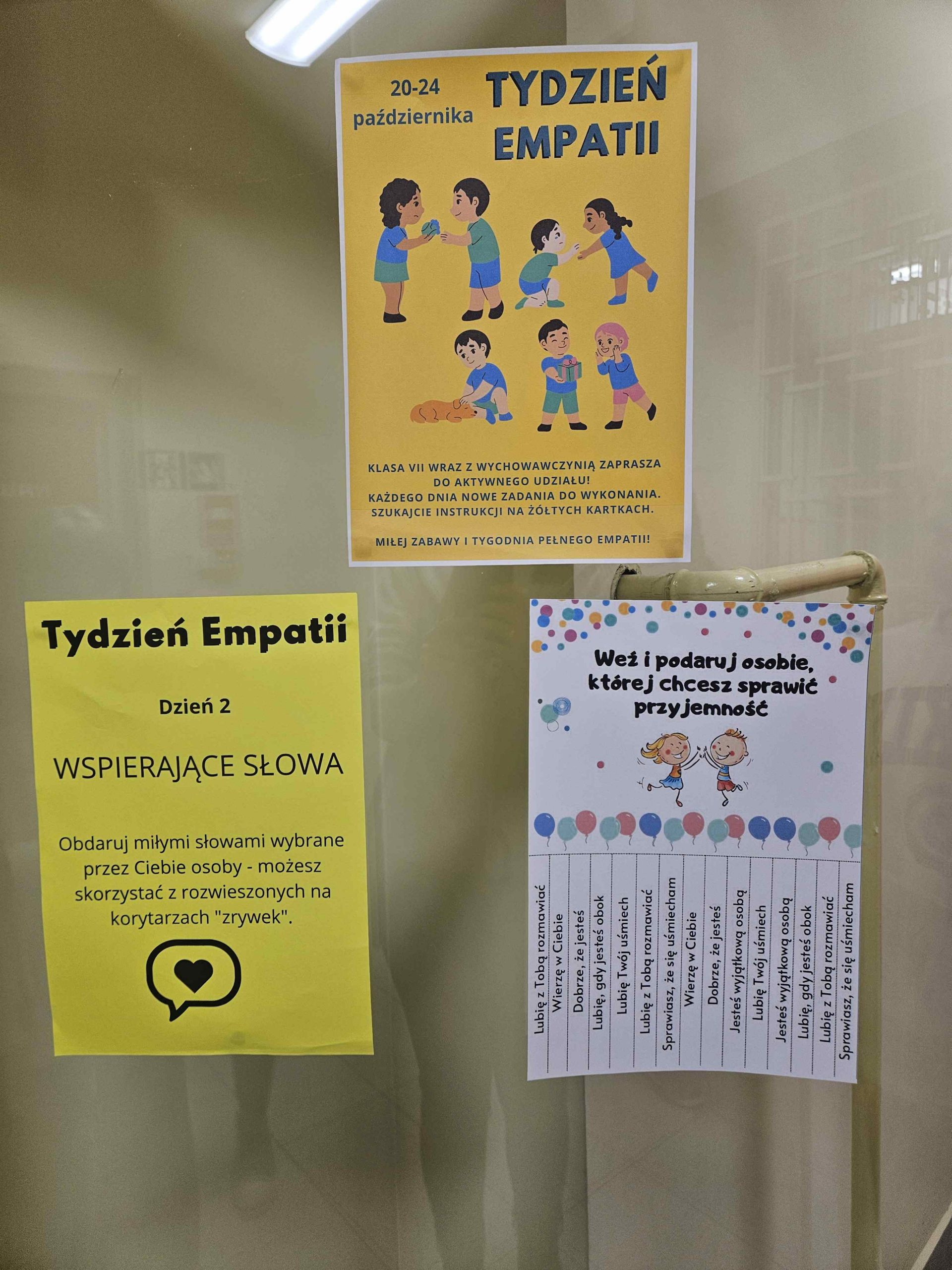 W ramach innowacji pedagogicznej „Empatyczna klasa” uczniowie klasy 7 wraz z wychowawcą w dniach 20-24 października zorganizowali Tydzień Empatii. Każdego dnia czekały na uczniów proste, ale wartościowe misje do wykonania, które miały na celu rozwijanie wrażliwości,życzliwości i zrozumienia wobec innych.Wśród zadań znalazła się m.in. Empatyczna Poczta, dzięki której uczniowie mogli przekazywać sobie nawzajem dobre słowa i gesty wsparcia. Cały tydzień zakończyło wspólne tworzenie Drzewa Empatii – symbolu dobra, szacunku i otwartości na drugiego człowieka.Dzięki tym działaniom uczniowie przekonali się, że empatia to nie tylko słowo, ale przede wszystkim codzienne postawy i drobne gesty, które budują pozytywne relacje w klasie i szkole.