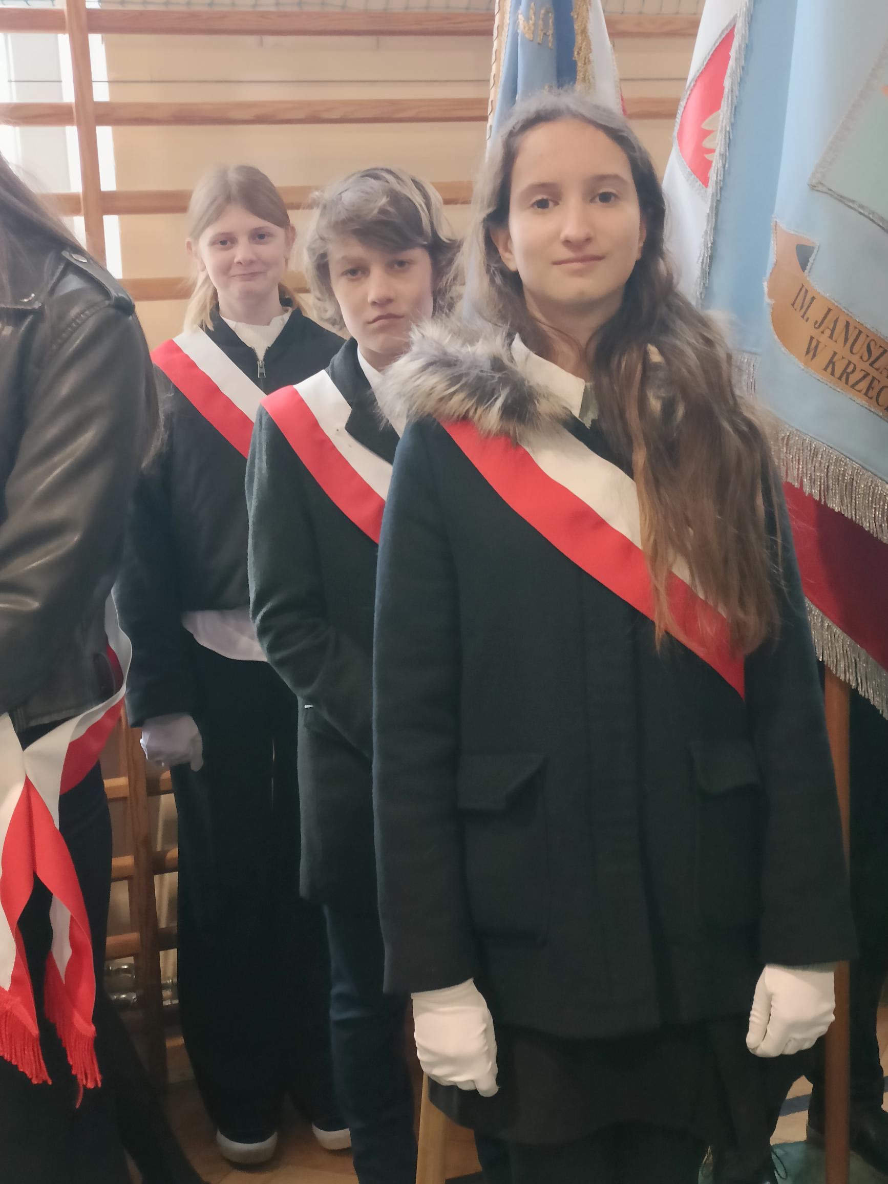Naszą szkołę reprezentował poczet sztandarowy w składzie: Jan Dudek i Michał Szymczyk oraz Zuzanna Baja , Gabriela Morawska, Lilianna Sadowska, Oliwia Strąg.